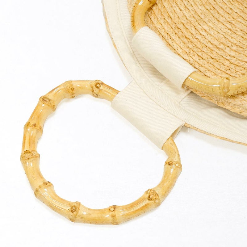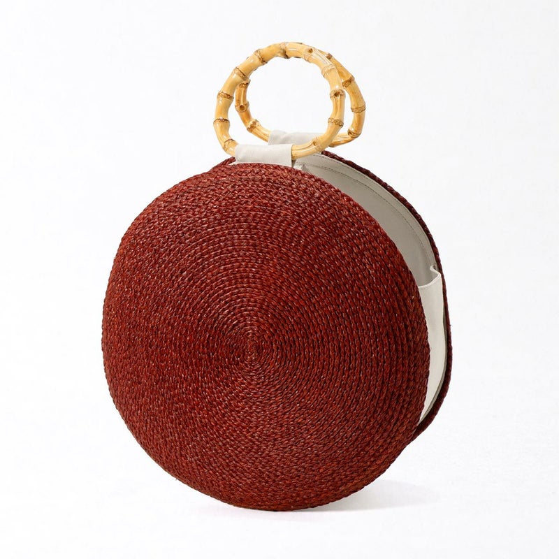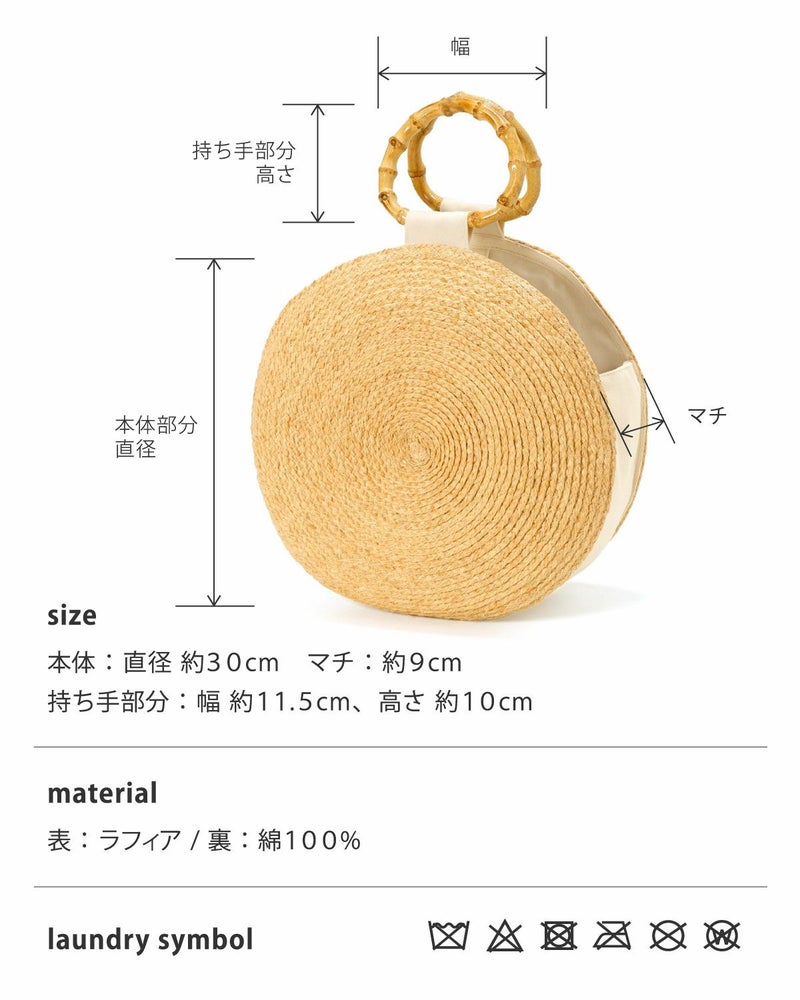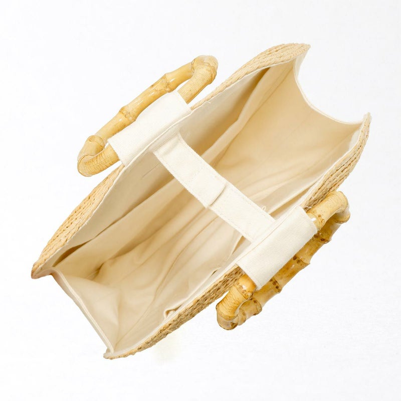 ラフィアブレードとバンブー(竹)の持ち手のナチュラル感がマッチしたハンドバッグ。持ち手や本体部分は天然素材のため、いずれも同じ色柄のものはなく、それぞれに個性豊かな表情を持っています。夏の装いに相応しい、涼しげな雰囲気がポイント。内側にポケットが3つあるので小物類を分けて入れられます。