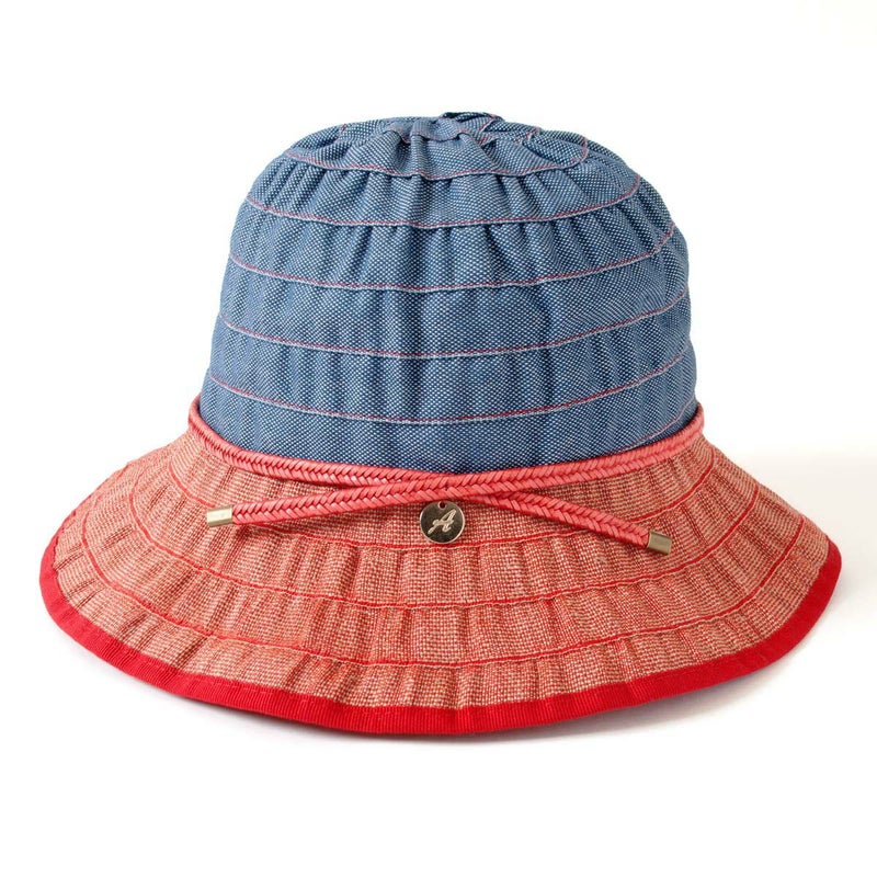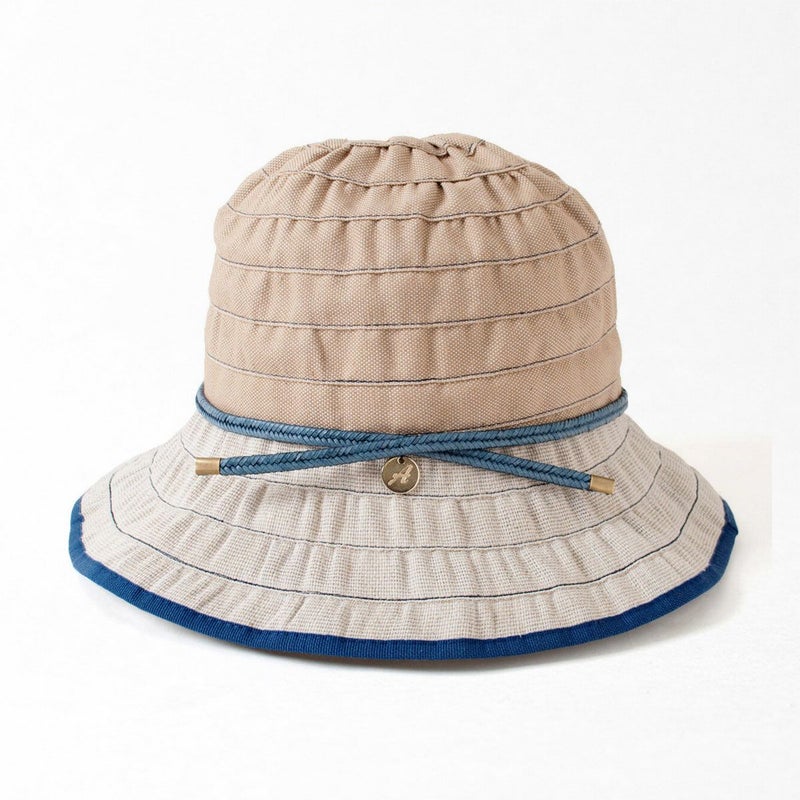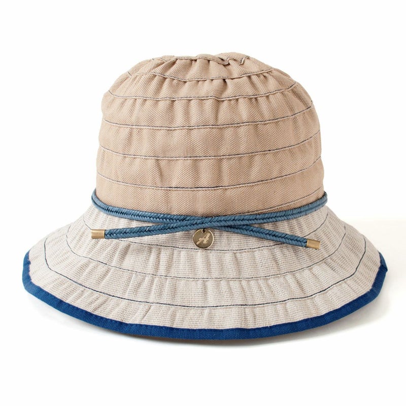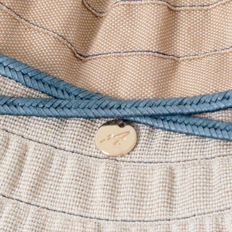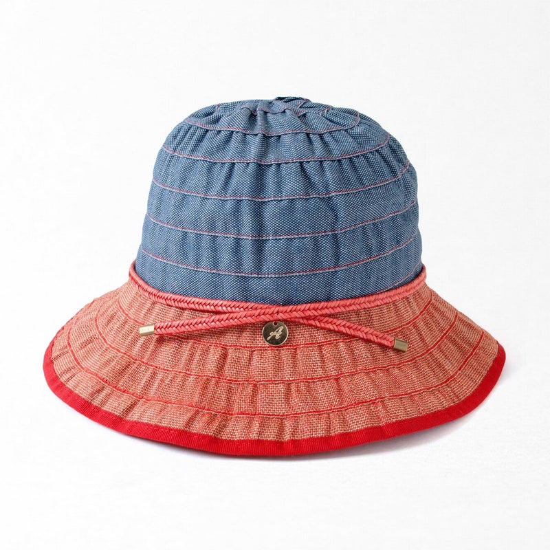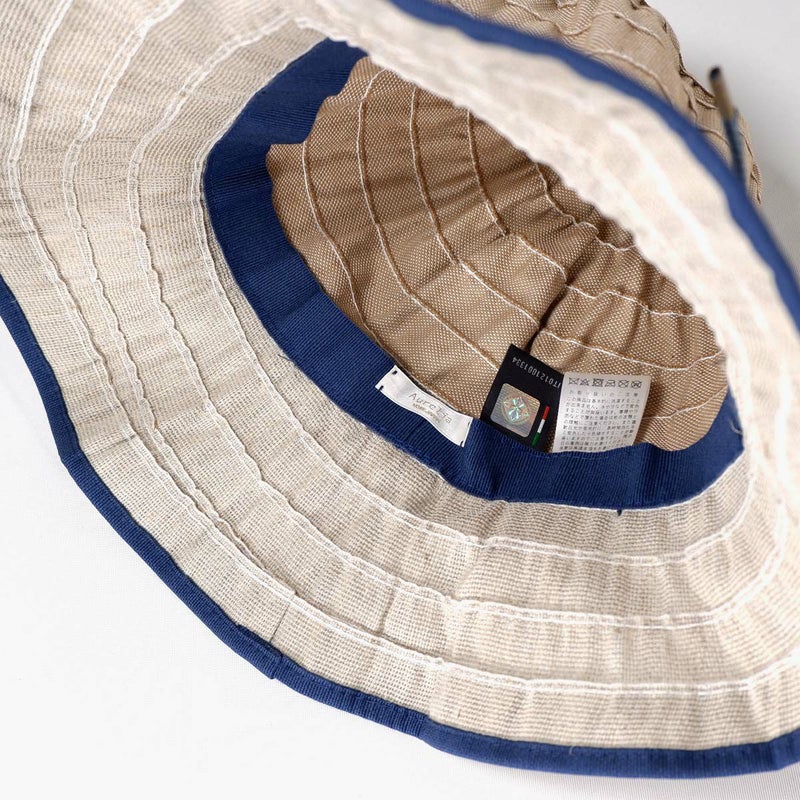 テープ状の生地をぐるぐると巻き上げて作るブレード製法で作られたブレードキャペリン。この製法では光が当たると独特の光沢感がうまれ、エレガントで上品な雰囲気になります。生地にはシャリ感のあるリネン素材を使用しており、固めの肌触りで、夏に合った爽やかな感触です。風通しも良く快適にご使用いただけます。目を引くブルーとレッドのカラーとベーシックなキャメル、ホワイトの2色展開です。ブルー/ロッソはビビットな色合いでジーンズなどに合わせれば引き締まった印象になります。キャメル/ビアンコはやさしく明るい印象です。