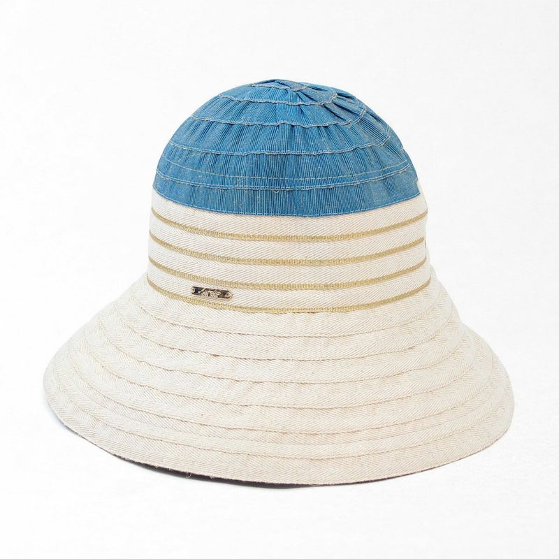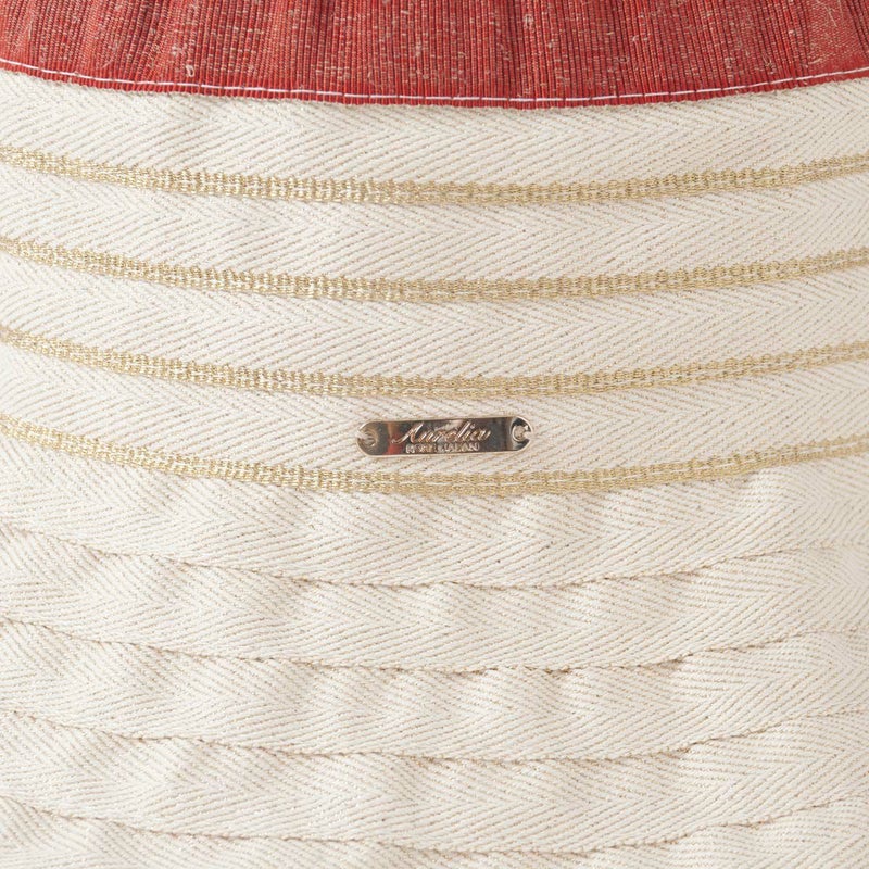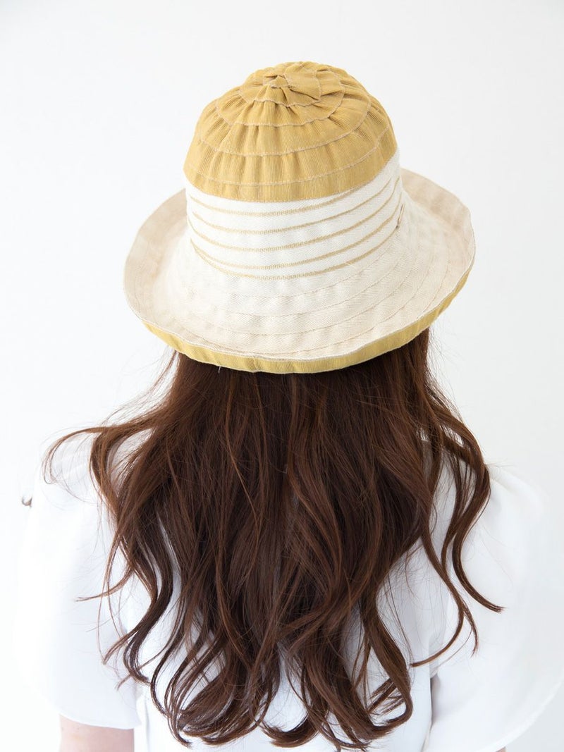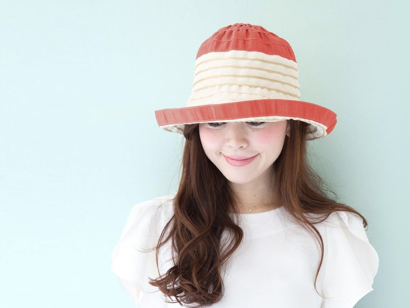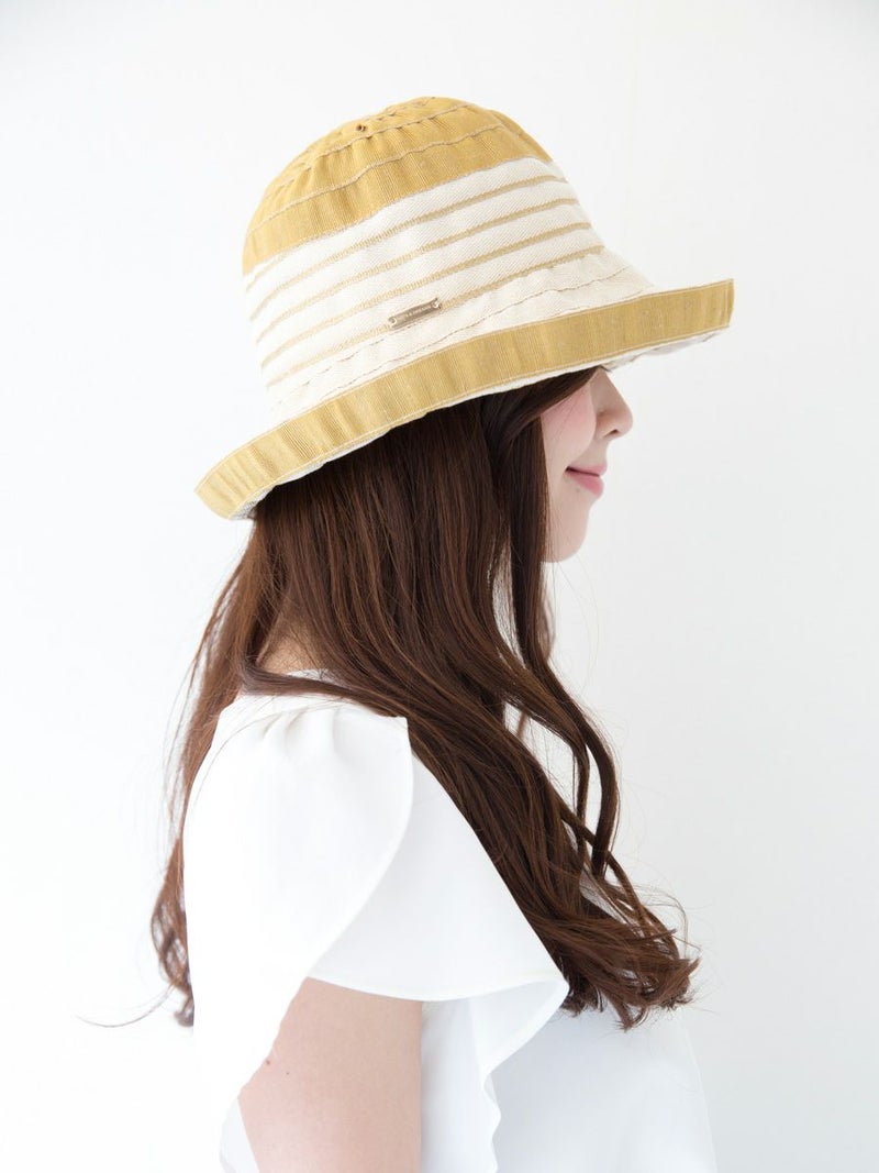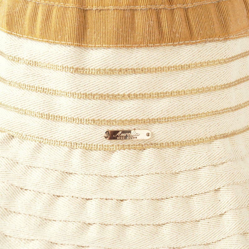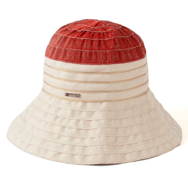 テープ状の生地をぐるぐると巻き上げて作るブレード製法で作られたコットンキャペリン。この製法では光が当たると独特の光沢感がうまれ、エレガントで上品な雰囲気になります。デザインがシンプルなのでいろいろなお洋服に合わせやすいのも特長です。素材にもイタリア製ならではのこだわりがあり、品質や色合いなどきめ細かい選定を行い、デザインに合った素材選びがなされています。生地はシャリ感のある固めの肌触りで、夏に合った爽やかな感触です。ブレードの縁には刺繍がほどこされており、民族模様を思わせるエレガントな仕上がり。明るいレッド(ロッソ)と引き締まったカーキ(トポ)柔らかいイエロー(セーナペ)に加え、爽やかなブルー(トゥルケーゼ)を合わせた4色展開。レッドとイエローは明るい印象を与え、カーキやブルーは被るとお顔が引き締まった印象になります。
