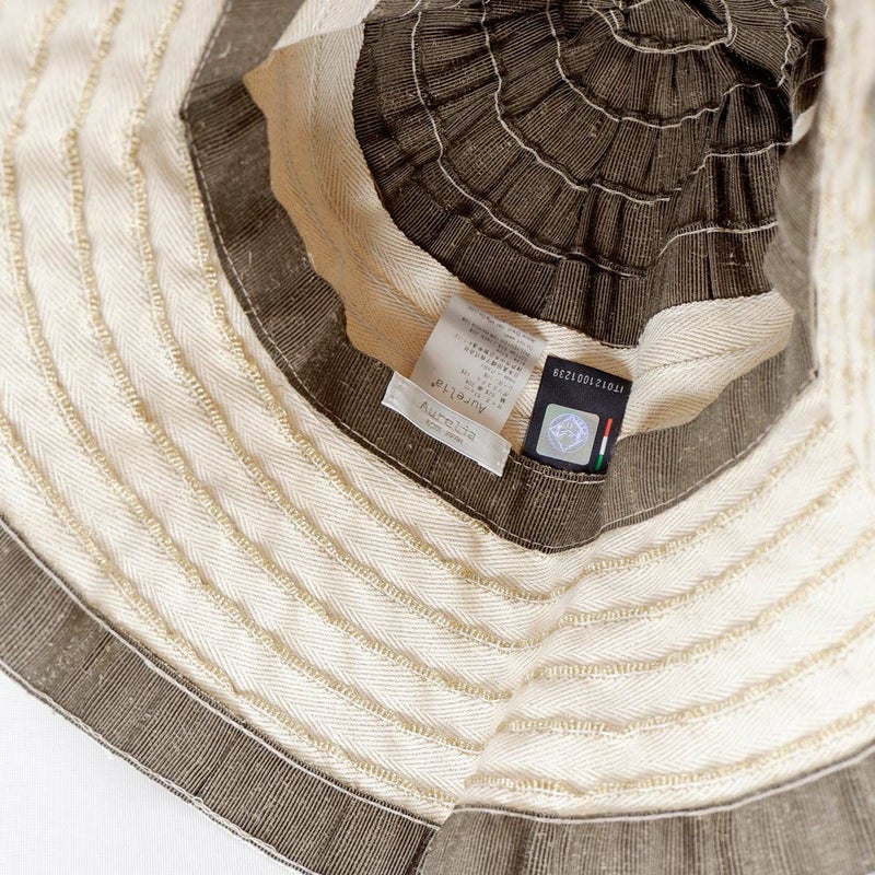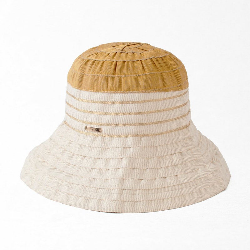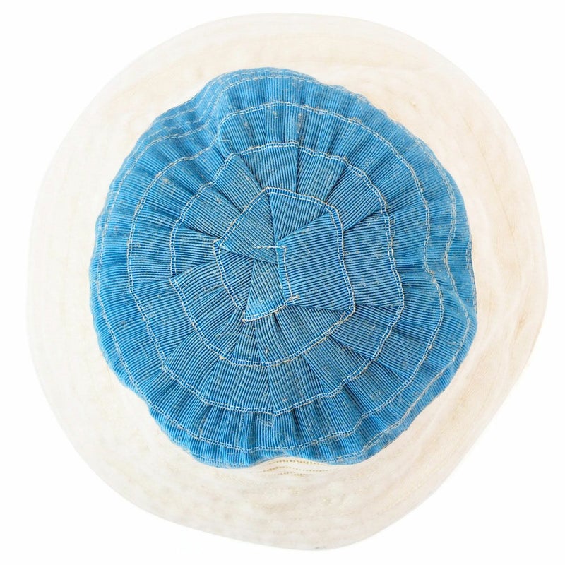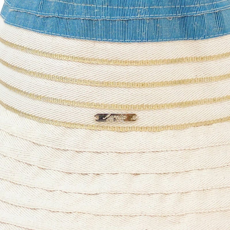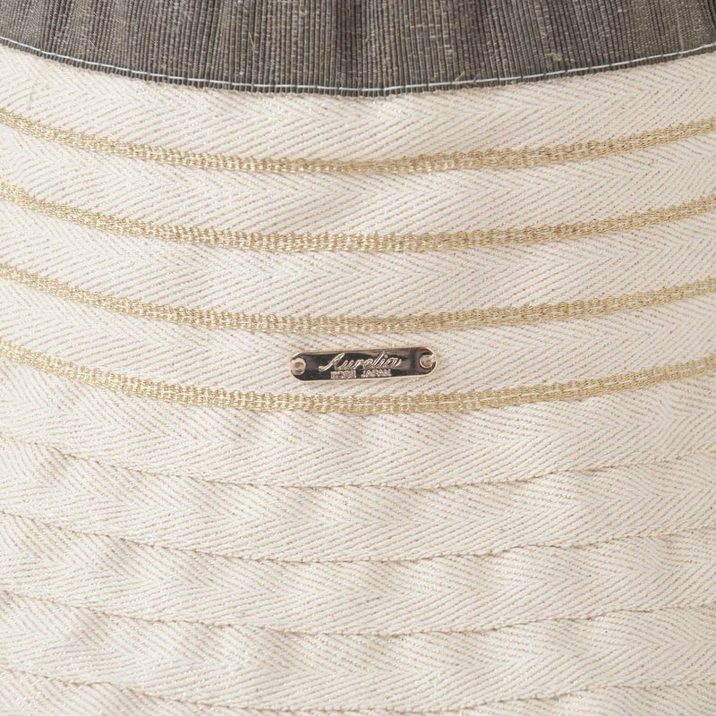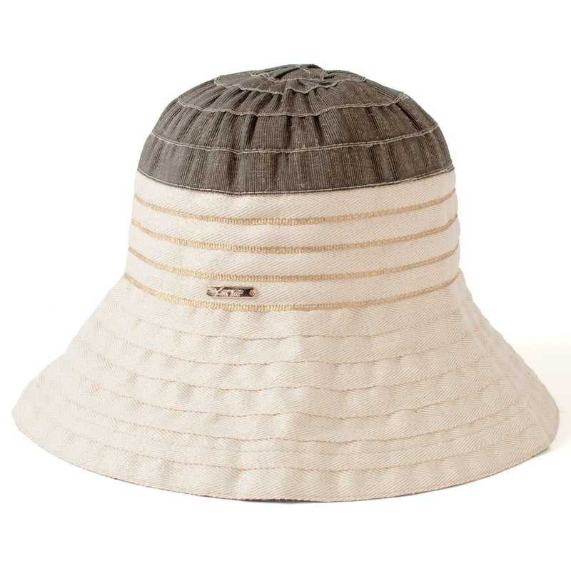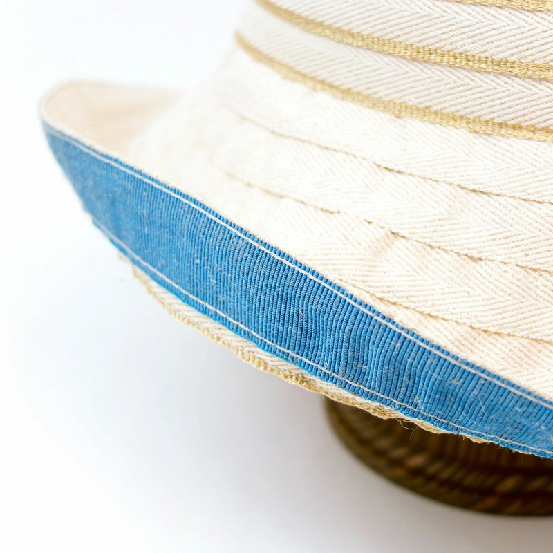 テープ状の生地をぐるぐると巻き上げて作るブレード製法で作られたコットンキャペリン。この製法では光が当たると独特の光沢感がうまれ、エレガントで上品な雰囲気になります。デザインがシンプルなのでいろいろなお洋服に合わせやすいのも特長です。素材にもイタリア製ならではのこだわりがあり、品質や色合いなどきめ細かい選定を行い、デザインに合った素材選びがなされています。生地はシャリ感のある固めの肌触りで、夏に合った爽やかな感触です。ブレードの縁には刺繍がほどこされており、民族模様を思わせるエレガントな仕上がり。明るいレッド(ロッソ)と引き締まったカーキ(トポ)柔らかいイエロー(セーナペ)に加え、爽やかなブルー(トゥルケーゼ)を合わせた4色展開。レッドとイエローは明るい印象を与え、カーキやブルーは被るとお顔が引き締まった印象になります。