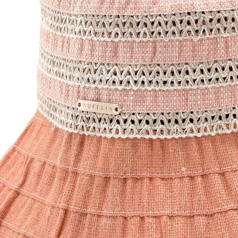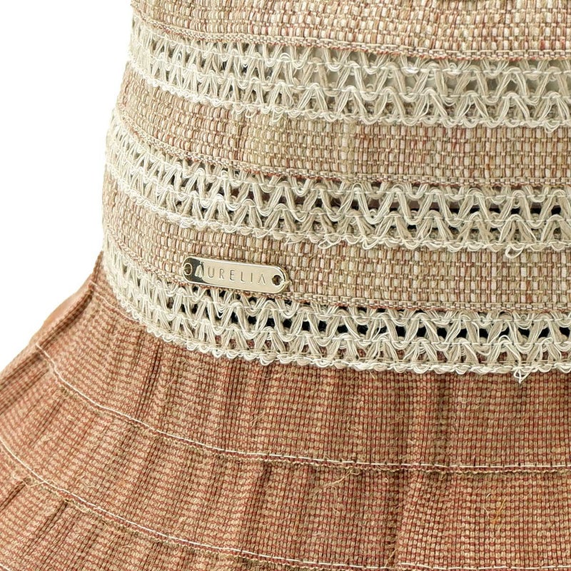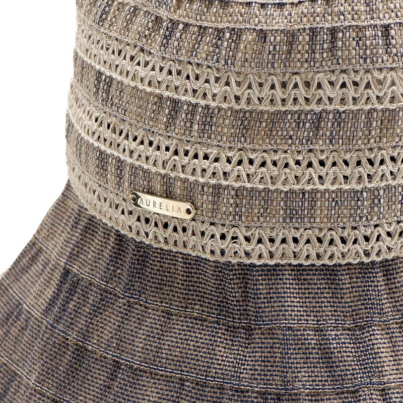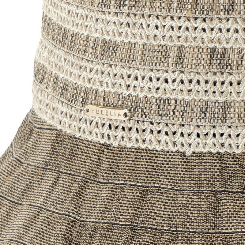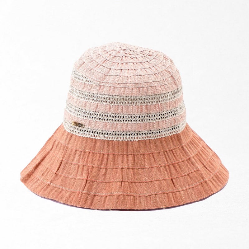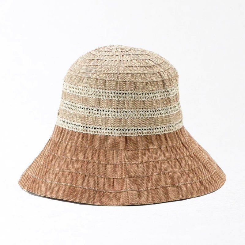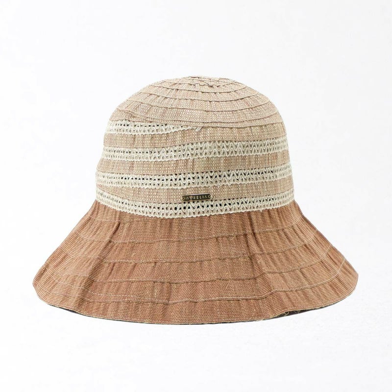 テープ状の生地をぐるぐると巻き上げて縫うブレード製法で作られたハット。つばの内側には民族模様を思わせる刺繍がほどこされ、レースのブレードが見た目にも涼やかな、シンプルながらシルエットの美しい帽子です。素材にもイタリア製ならではのこだわりがあり、品質や色合いなど細かい選定を行い、デザインに合った素材選びがなされています。帽子内側のスベリ(ビン革)部分にアジャスターが付いているのでお好みのサイズ感で被れ、使わないときは折りたたんでコンパクトに持ち運べます。シンプルなデザインなのでカジュアルからエレガントまで幅広いスタイルに合わせられる帽子です。