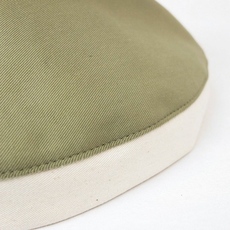 当店人気No.1のコットンハットに、バイカラータイプが登場!つば先がキナリ色の生地で切り替えてあるので、見た目にも軽やかな雰囲気が漂います。つばの裏側までキナリ色なので、つば先を上げる角度によって見た目のイメージがガラリと変わります。カラー展開は7色、すでに単色タイプの