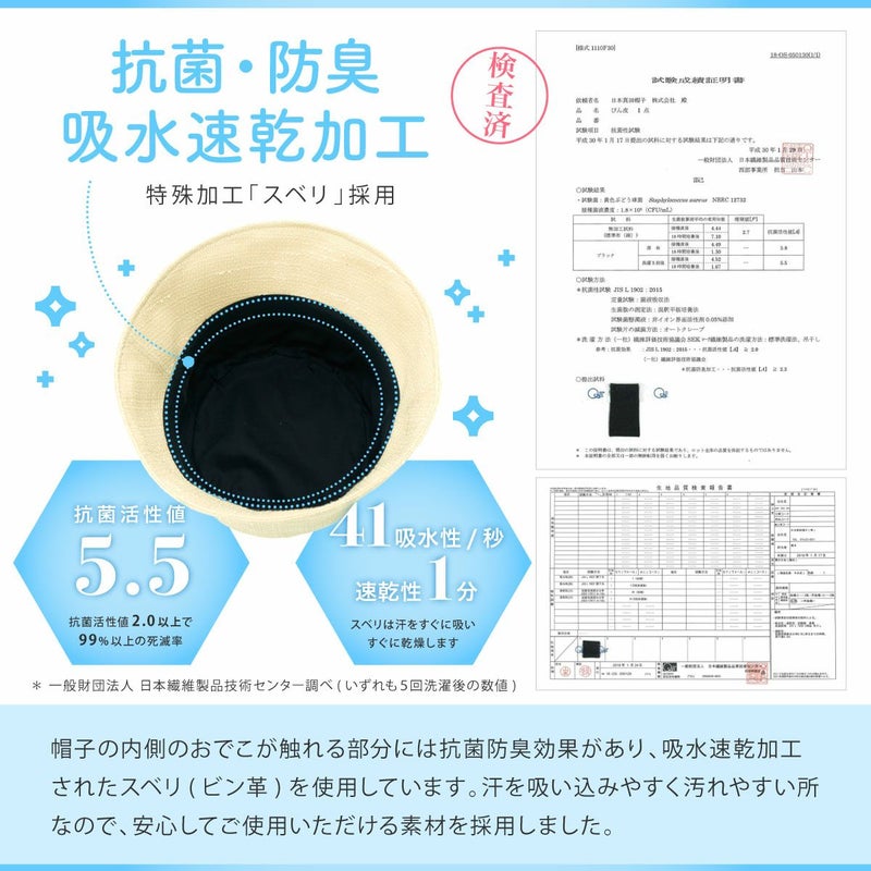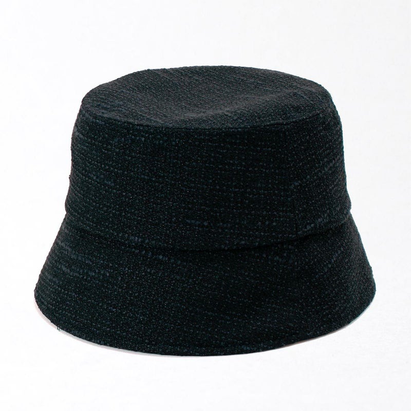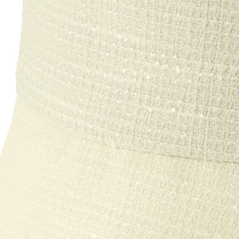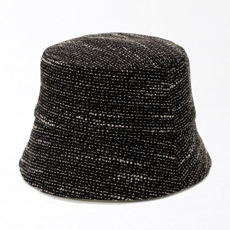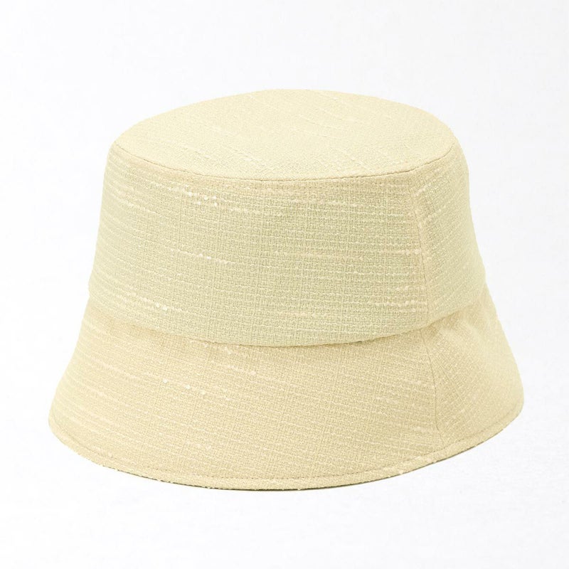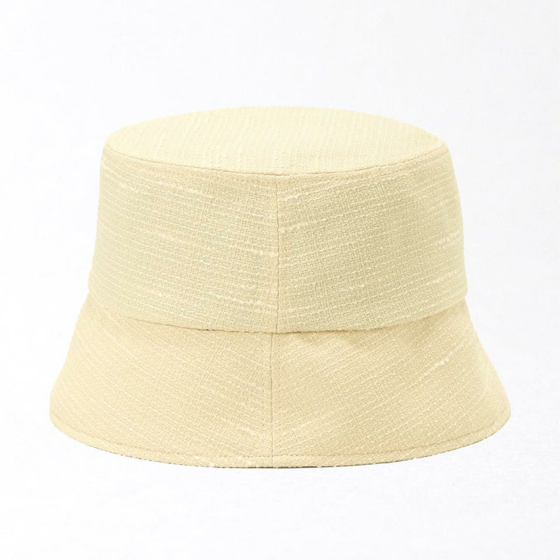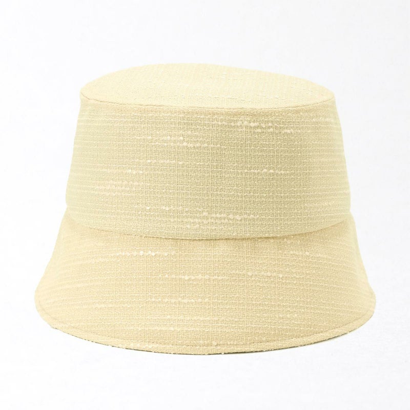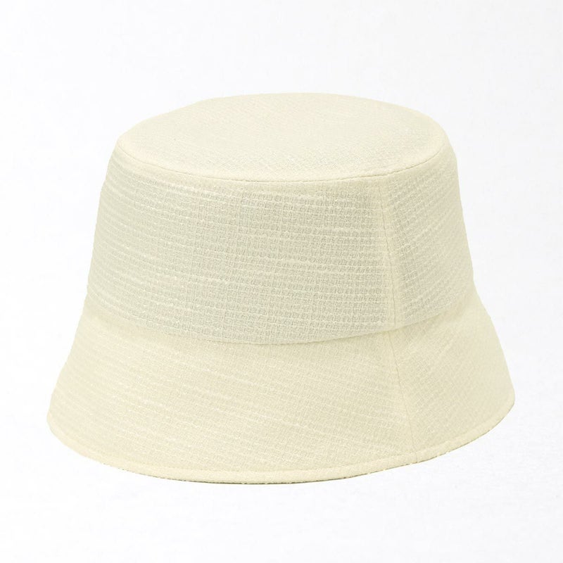夏にぴったりなツイードバケットハット。太さの異なる糸を平織にしたブッチャー素材を使用、生地の表面の凹凸が見る角度によってさまざまな表情を見せます。さらにさりげなく煌めくラメがエレガントさを演出。カジュアルになりがちなバケットハットに、華やかさをプラス。こだわりのシルエットは紫外線対策としてはもちろん、小顔効果も期待できる絶妙な角度と長さで仕上げました。スベリ(ビン革)部分は吸水速乾・抗菌防臭素材を使用、暑い日でもさらっと快適に被れます。軽量で、使わない時は軽く折りたたんで持ち運びにも便利。ご家庭で手洗いOKなので、簡単にお手入れできるのも嬉しいポイントです。