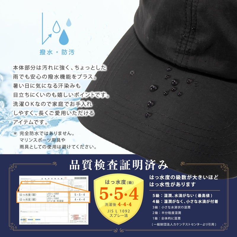 軽量でシンプルデザインが使いやすいナイロンキャップ。人気の深めデザインで、頭まわりもお好みに合わせて選べる2サイズ展開に!色味はカジュアルからきれいめファッションまで合わせやすいベーシックカラーを揃えました。日差しから目元を守りつつ、視界を遮らない絶妙な長さとつばの形状にこだわりました。本体生地に撥水加工を施しているため、暑い日に気になる汗染みも目立ちにくいのも嬉しいポイント。アウトドアやレジャー・スポーツでのちょっとした雨はもちろん、汚れにも強い仕様です。肌が直接触れるスベリ(ビン革)には接触冷感素材を使用しており、暑い季節でもさらっと快適に被れます。後部は着脱しやすい無段階アジャスター付きで、簡単にサイズ調整できるので性別・年齢問わずお好みのサイズでかぶれます。