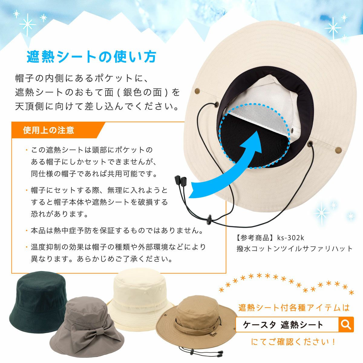 洗えるUVカットキャスケット