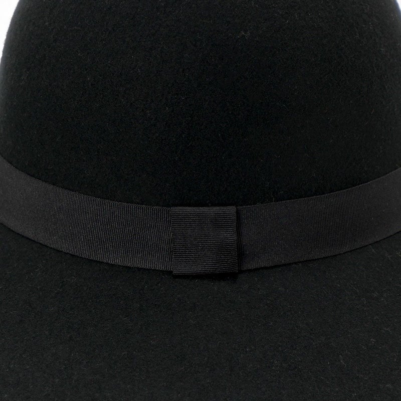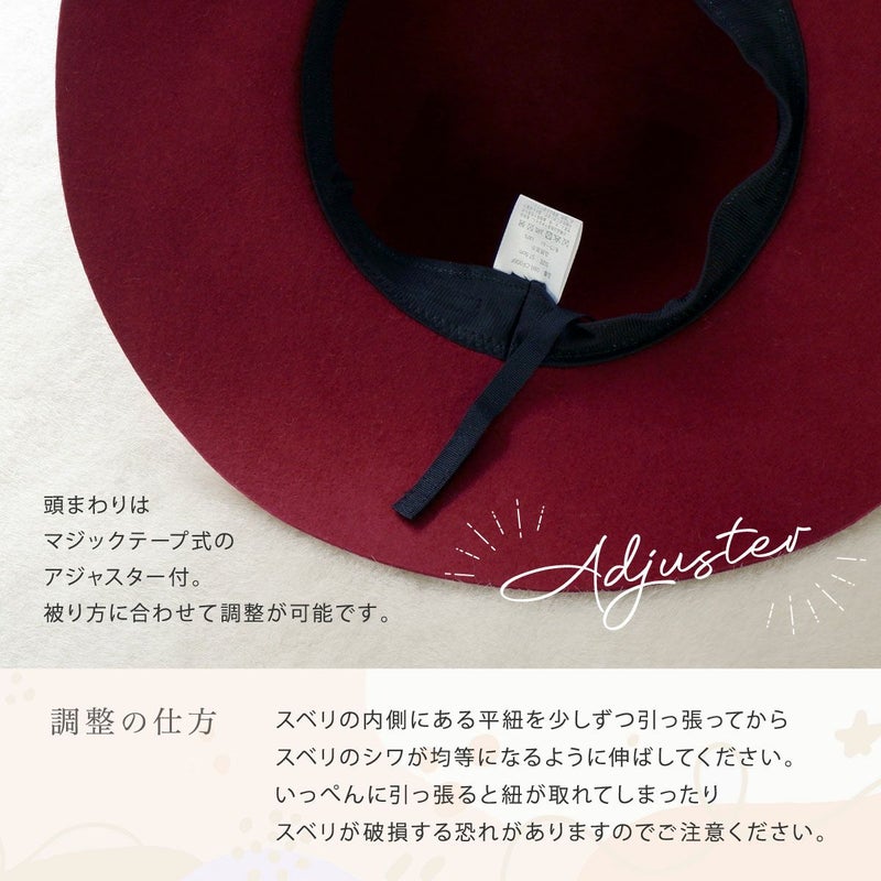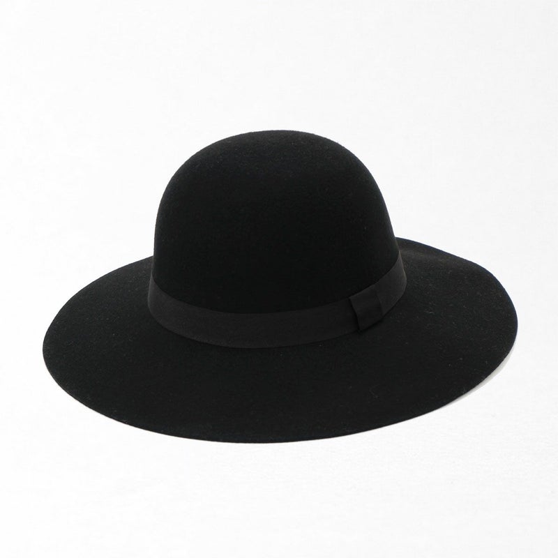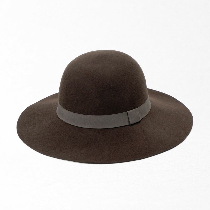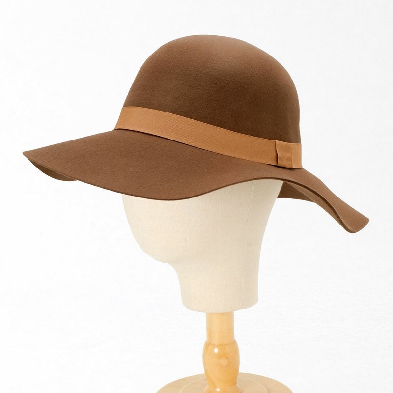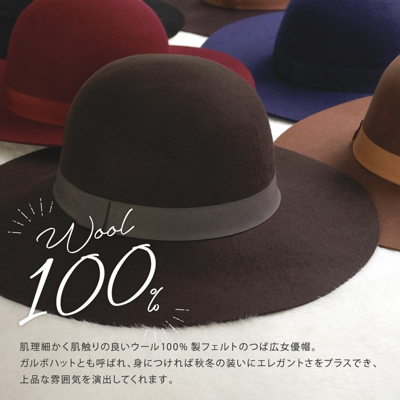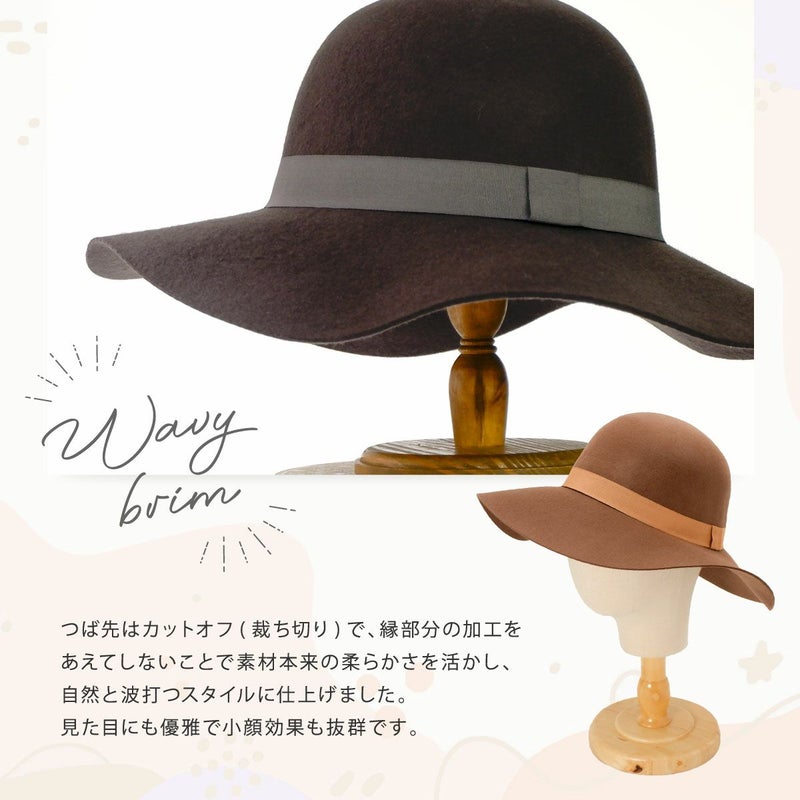 肌理細かく肌触りの良いウール100%製フェルトのつば広女優帽!つば先はカットオフ(裁ち切り)で、縁部分の加工をあえてしないことで素材本来の柔らかさを活かし、自然と波打つスタイルに仕上げました。見た目にも優雅で小顔効果も抜群です。ガルボハットとも呼ばれるこの帽子、身につければ秋冬の装いにエレガントさをプラスでき、上品な雰囲気を演出してくれます。コシにはシンプルにリボンを巻き、甘すぎないスタイルに仕上がっています。