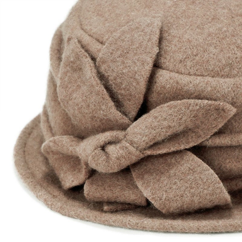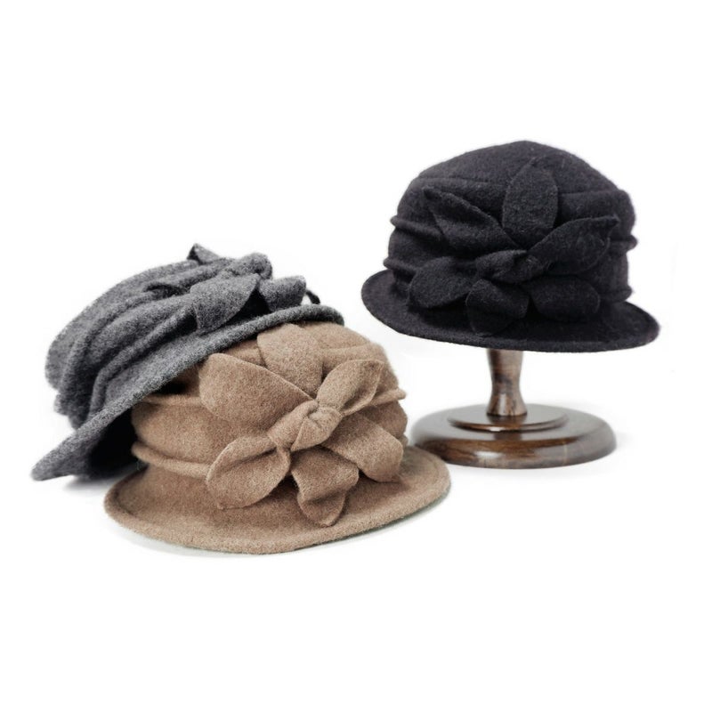 シャープな花弁のコサージュがついたクローシェ(クロッシュ)秋冬のコーディネートに欠かせないウール素材でやわらかく頭を包みます。つば先にはソフトワイヤーが入っているので型崩れしにくく、継ぎ目のないデザインなのでお好きな角度でかぶれます。吊鐘状のシルエットが特徴のクローシュに、共生地で作ったコサージュが印象的です。軽量でかぶりやすく、様々なファッションに合わせやすいカラーバリエーションを取り揃えました。