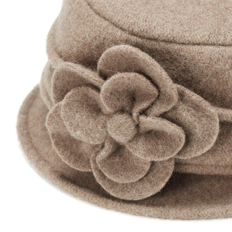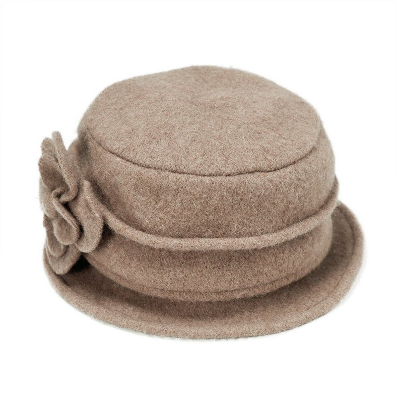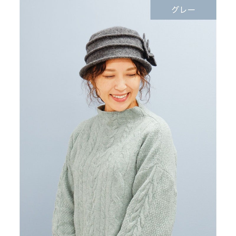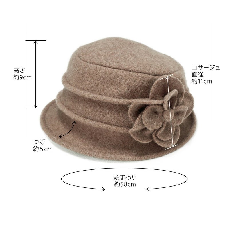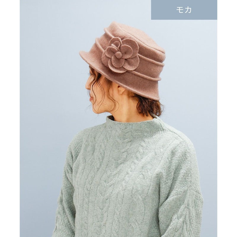 丸い花びらのコサージュがついたクローシェ(クロッシュ)秋冬のコーディネートに欠かせないウール素材でやわらかく、暖かく頭を包みます。つば先にはソフトワイヤーが入っているので型崩れしにくく、継ぎ目のないデザインなのでお好きな角度でかぶれます。吊鐘状のシルエットが特徴のクローシュに、共生地で作ったボリューム感のあるコサージュが印象的です。軽量でかぶりやすく、様々なファッションに合わせやすいカラーバリエーションを取り揃えました。