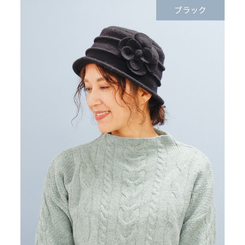 カメリアコサージュ付ウールクローシェ