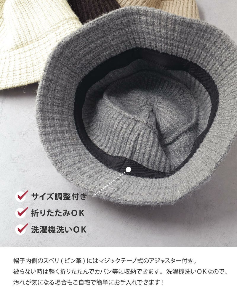 今や秋冬のスタイルに必須の、シンプルデザインのニットバケットハット。保温性に優れた柔らかいアクリル混素材を使用し、チクチクしにくい快適な着用感がポイント。ダウンスタイルのブリムは小顔効果が期待できます。折りたたみができるので持ち運びにもとっても便利。カラーバリエーションは性別や世代を問わず使いやすいベーシックカラーを揃え、頭まわりも60cmと余裕のあるサイズ感で、お好みに合わせてフィット感を調整できるようアジャスターが付属しています。洗濯機洗いOKなので、汚れが気になる場合もご自宅で簡単にお手入れしていただけます!