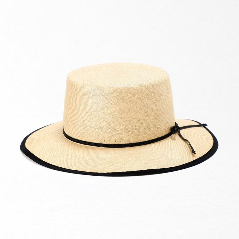 ココヤシの枝から採れる希少な素材「ブンタール」を使って編まれたカンカン帽。非常にきめ細やかな編み目で上品な表面光沢が美しいアイテムです。年々厳しくなる酷暑に最適な、軽やかで通気性も抜群の逸品です。この編み方を継承する職人がおらず、現存する素材分しかもう手に入らないと言われる希少かつ最高級の品です。