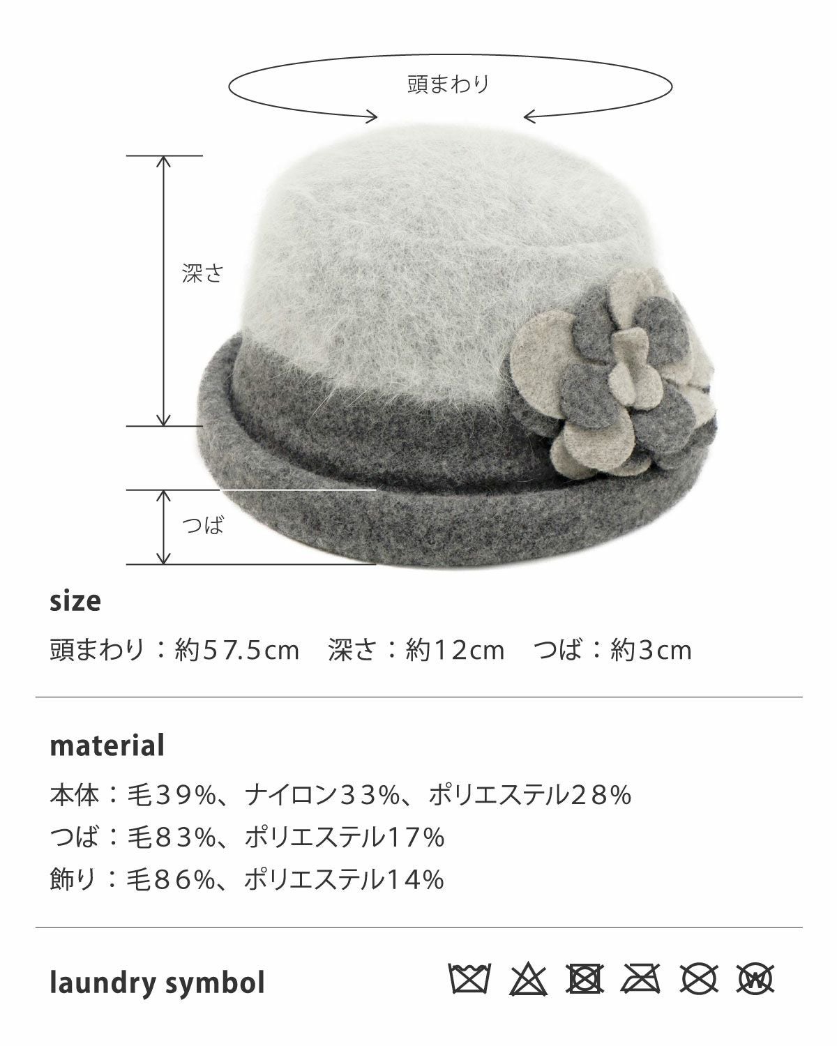 フラワーコサージュウールハット