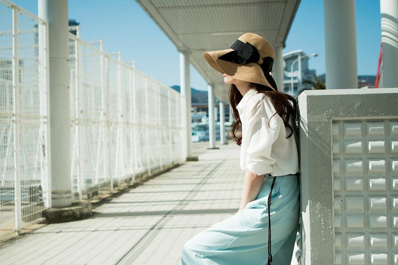 通気性が良く、天然素材ならではの蒸れにくいブレード素材製のつば広キャペリン。独自の手法を用いたブレード素材で、従来の通気性も保ちつつ紫外線も防げる細かな編み目を持ち、かつ軽量化にも成功。どんな服装にも合わせやすいカラーでムラ染加工を施すことで、ナチュラルなイメージをそのままに、機能性も充実したアイテムです。