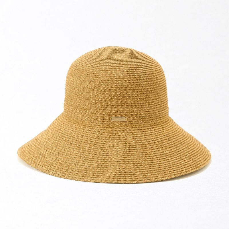 人気のペーパーブレードを使って縫い上げたつば広帽子!サイドに付けたゴールドプレートがワンポイントの上品なアクセントに。お手持ちのコサージュや薄手のストールを巻いてオリジナルアレンジも楽しめます!深く被って首元までしっかり被れば紫外線防止効果は最大限に☆編み込み形状なので通気性もあります。実用的でオシャレ、その上エレガントな雰囲気漂うアイテムです。用途やお好みに合わせてつばの長さを2種類からお選びいただけます。