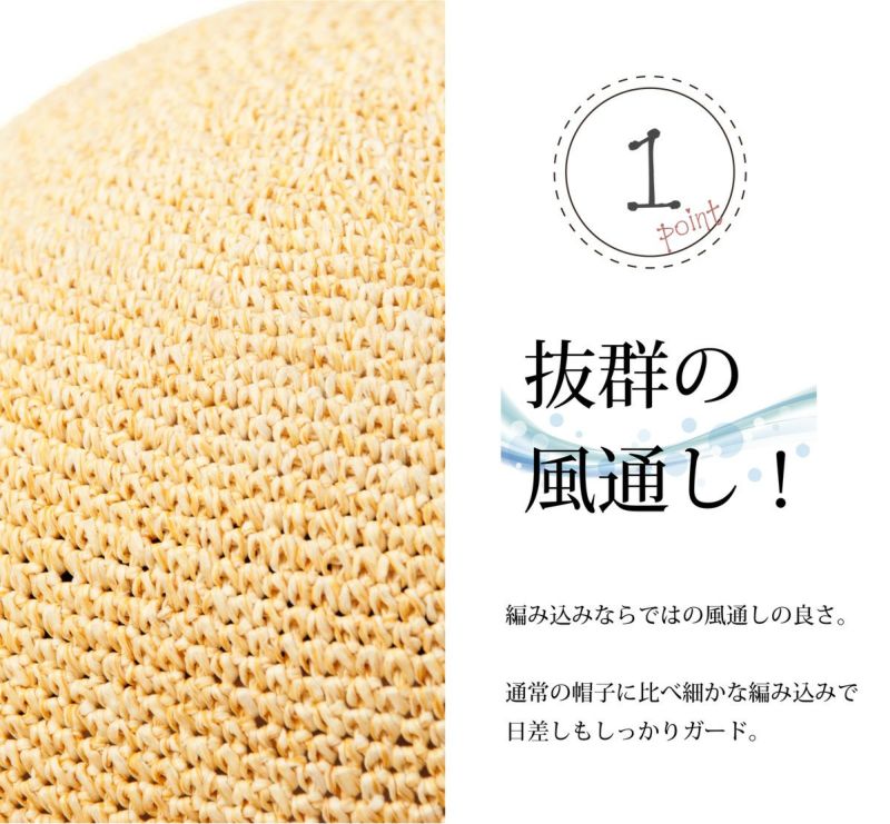 夏に最適!通気性抜群のこま編みセーラーハット。風通しが良く、軽く、折りたたみができる便利な帽子で暑い季節にぴったりな帽子。つばは11cmの長さがあるのでしっかり顔まわりをカバー、つば先にはワイヤー入りなのでブリムアップしてアレンジしながら被れます。シンプルなデザインなのでどんなファッションにも合う、デイリーユースにぴったりのつば広ハットです。