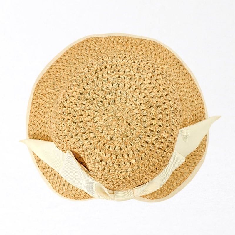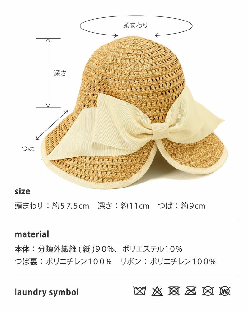 【素材】本体:分類外繊維(紙)90%、ポリエステル10% / つば裏:ポリエチレン100% / リボン:ポリエチレン100%