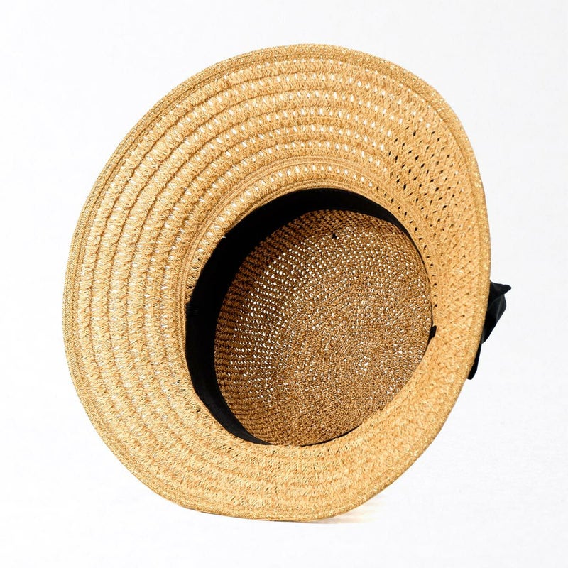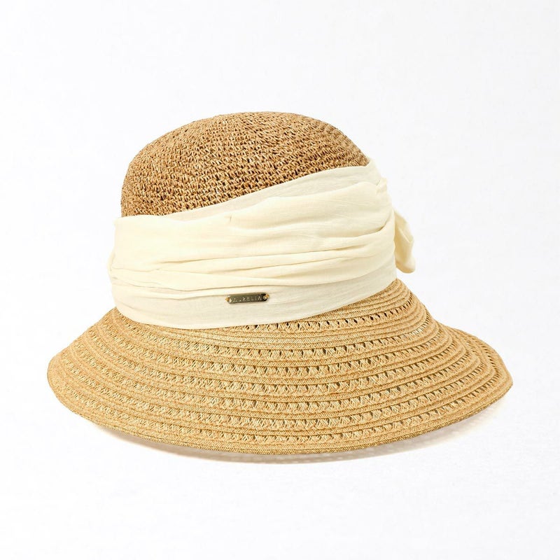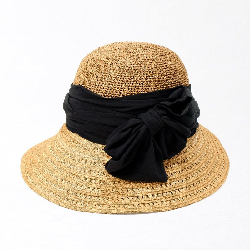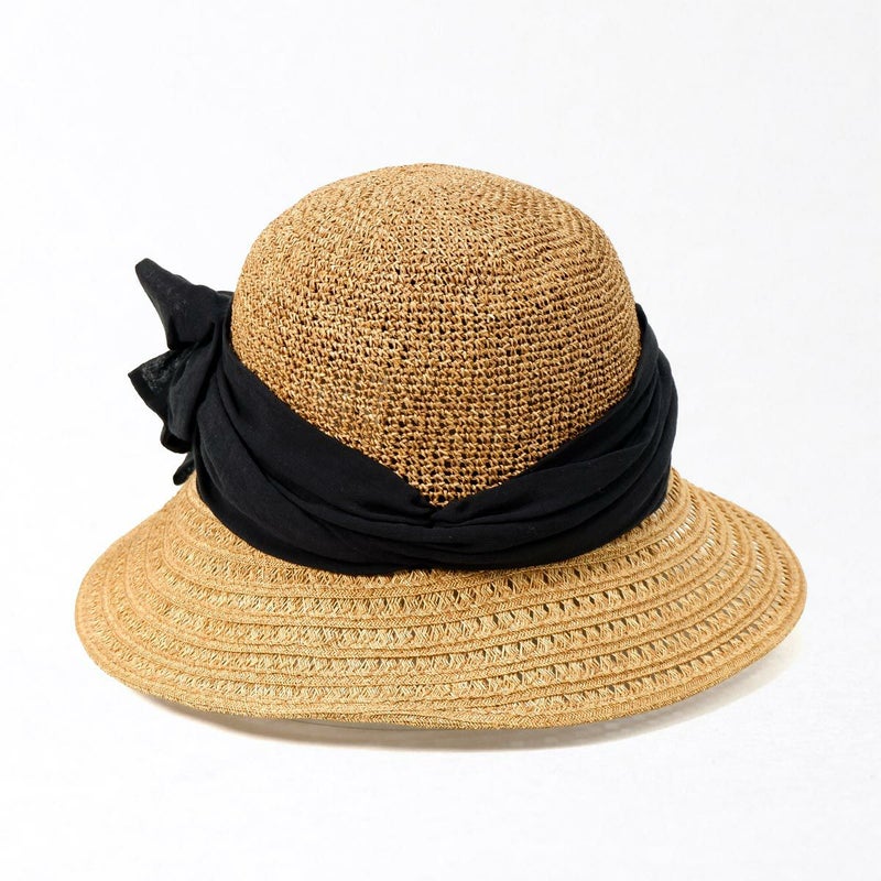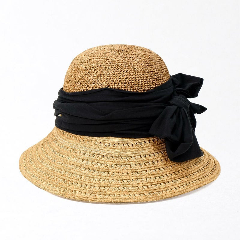 透かし編みブレードと細編みのコンビネーションが涼やかなつば広キャペリン。つば先に織り込まれたラメブレードが動きに合わせてさりげなく煌めきます。やや透け感のあるふんわり巻かれたコットンがナチュラルな雰囲気を醸します。スベリ(ビン革)部分には抗菌防臭・吸汗速乾素材を使用、暑い季節でも快適に被れます。前後のつばの長さを変えることで、前方は日除けに、短い後方は上を向いた場合でも背中などに干渉しない、ファッション性と実用性を兼ね備えたアイテムです。