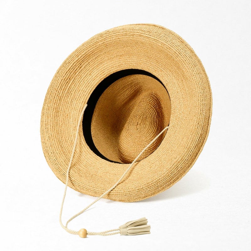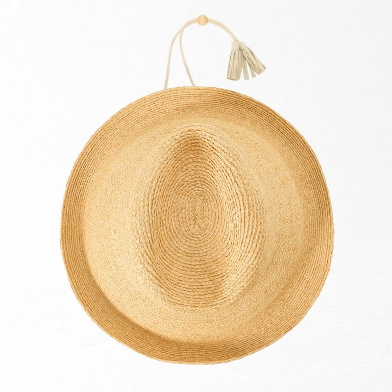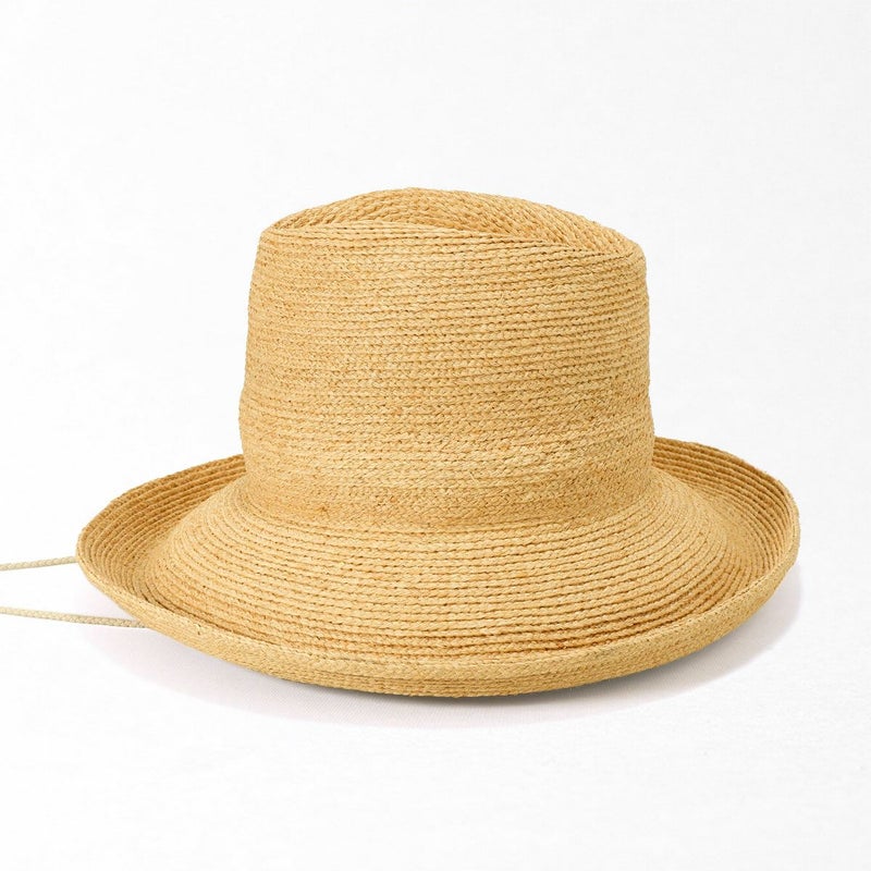 ラフィア100%のつば広中折れキャペリン。目の細かい上質なラフィアブレードを、熟練の職人がひとつずつ丁寧に縫い上げて作りました。ゆったりしたサイズ感でお顔周りを紫外線からしっかりガード。編み込まれたスエード調のストラップ(あご紐)にはウッドビーズが通してあり、シンプルながら細部までこだわり抜いて作られたアイテムです。