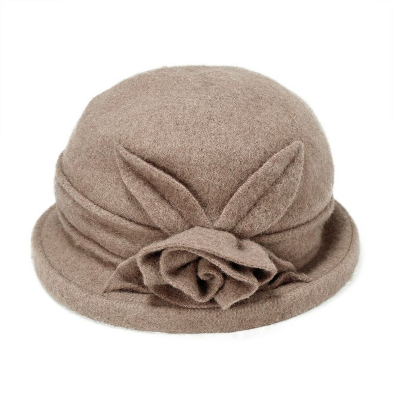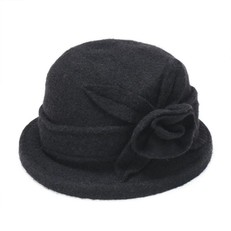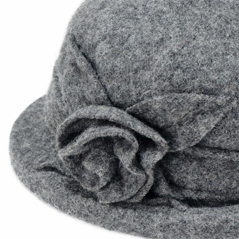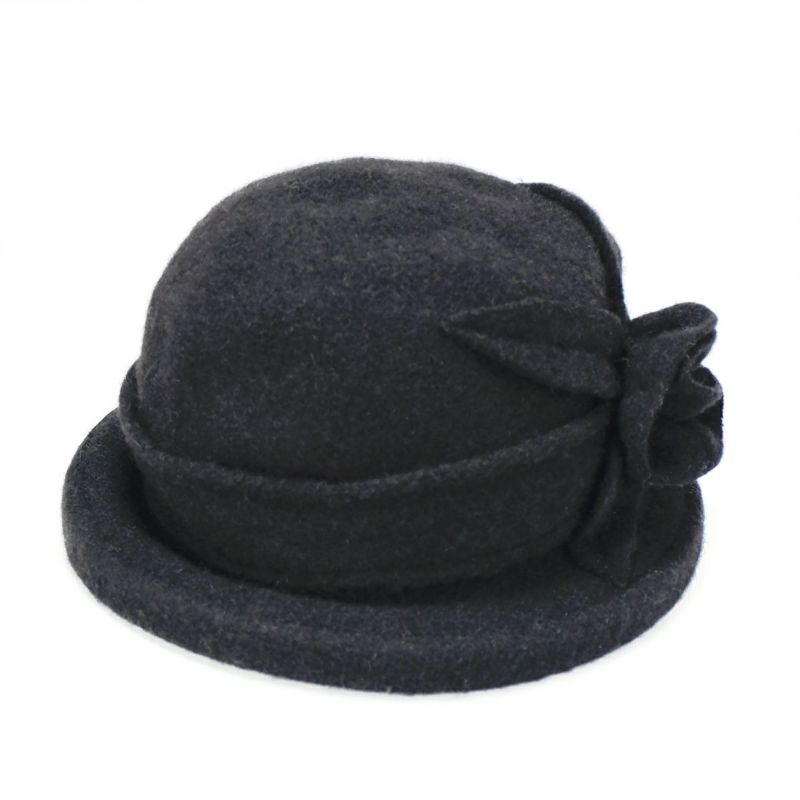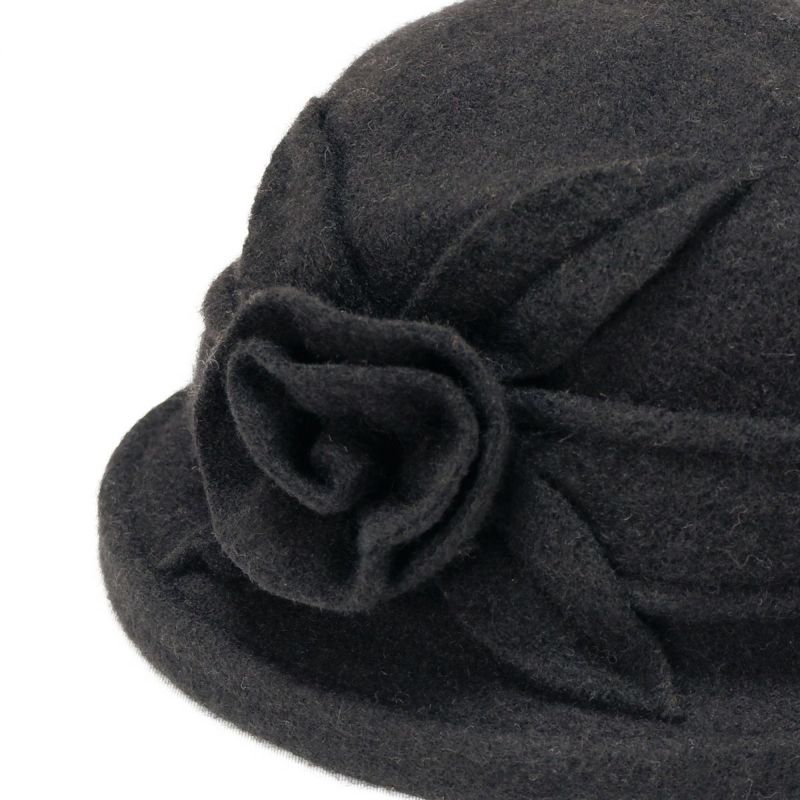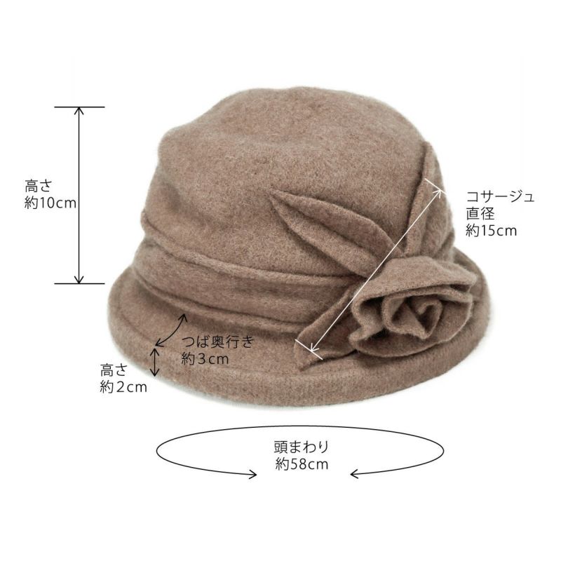 バラのコサージュがついた上品なクローシェ(クロッシュ)秋冬のコーディネートに欠かせないウール素材でやわらかく頭を包みます。つば先にはソフトワイヤーが入っているので型崩れしにくく、継ぎ目のないデザインなのでお好きな角度でかぶれます。吊鐘状のシルエットが特徴のクローシュに、共生地で作った立体的なコサージュがポイントです。軽量でかぶりやすく、様々なファッションに合わせやすいカラーバリエーションを取り揃えました。