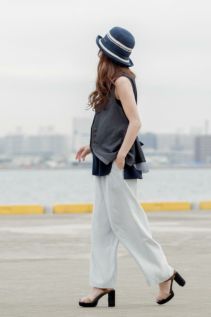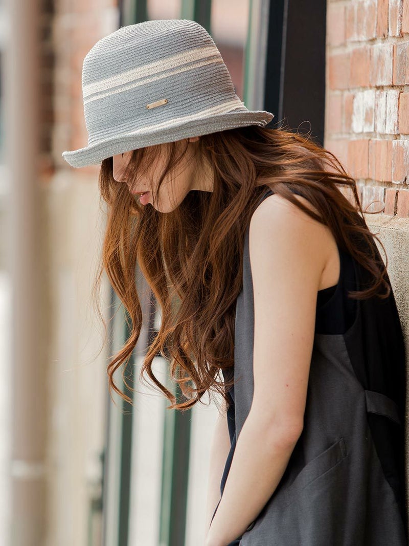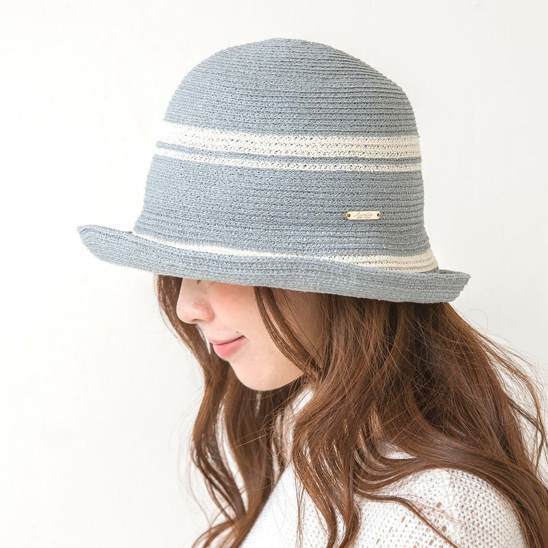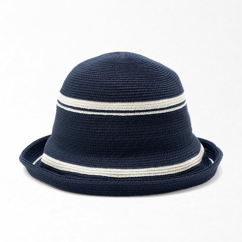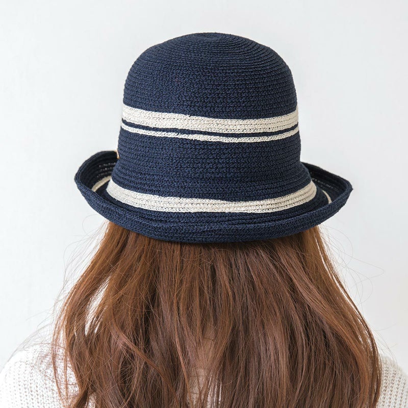 丸みのある帽体にホワイトのラインがアクセントになったセーラーハット。ペーパーブレードは紙の糸「OJO+」でできており、強度と弾力性に優れ、ケバ立ちがなくやさしい肌触りが特長です。つば先はワイヤー入りでアレンジ自在、軽量で通気性が良く頭の蒸れを防ぎます。内側のスベリ(ビン革)は抗菌防臭素材を使い、汗をかきやすい季節でも快適に被れます。帽子本体部分は手洗いOKなので、ご家庭で簡単にお手入れできます。やわらかい素材でコンパクトに折りたためるので、外出時の持ち運びにも便利です。
