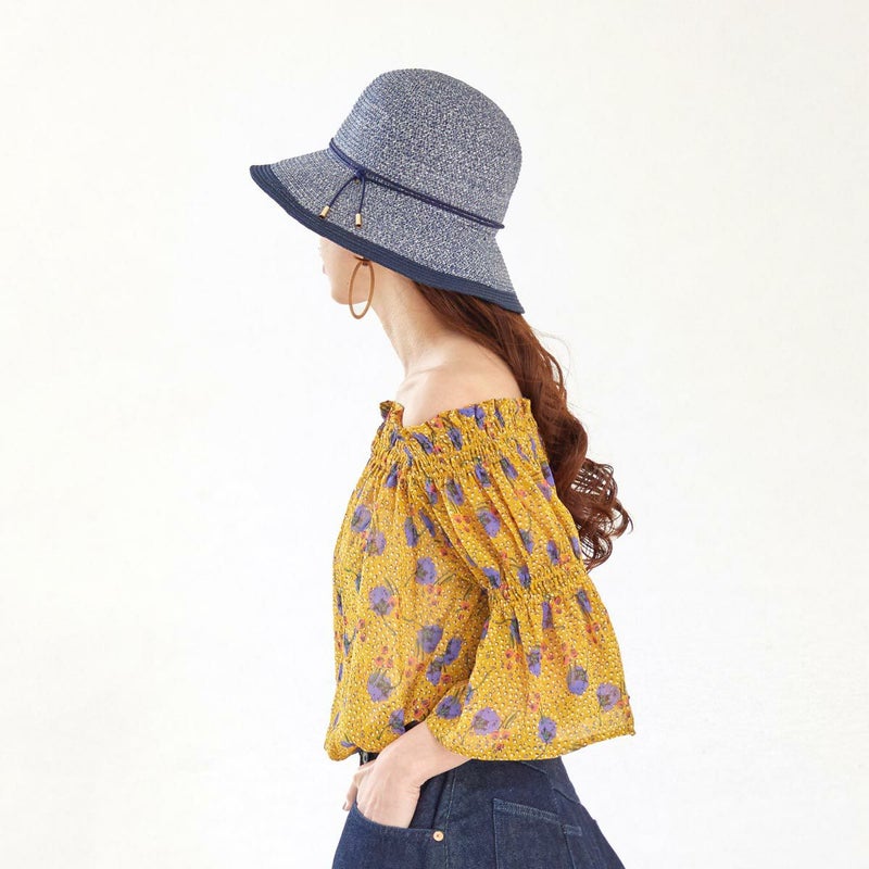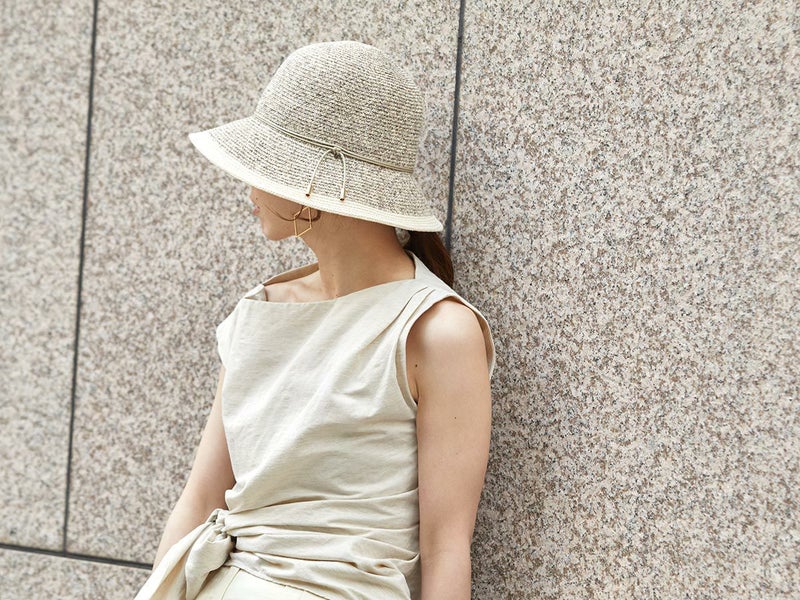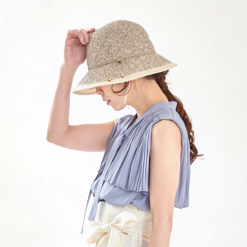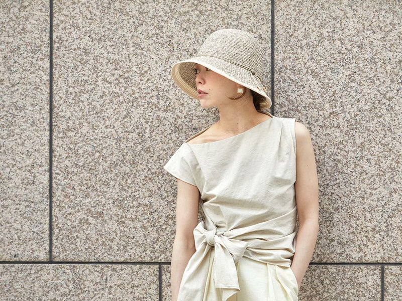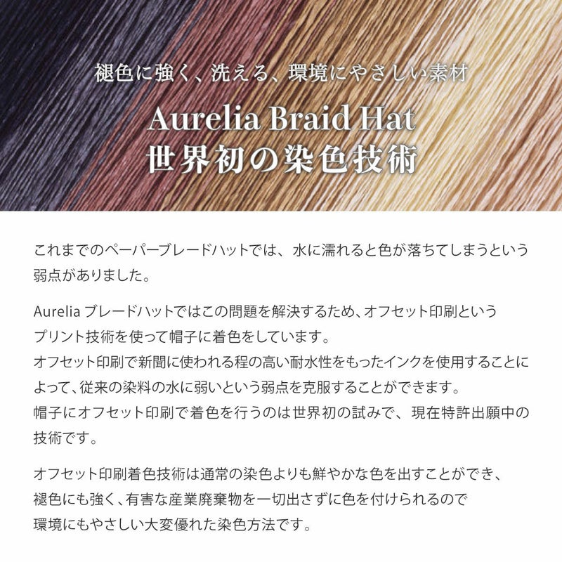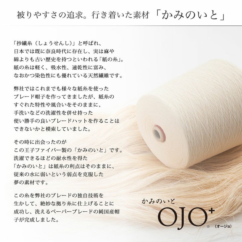 マニラ麻を原料としたパルプ素材から作り上げた、Nano Tricolore(ナノトリコローレ)を使用。UVインクによるオフセット印刷の色付け技術を用い従来の染色と遜色ないクオリティを保ちながら、排水を一切出さない環境に配慮したサスティナブルなブレード素材で出来た帽子です。スベリ(ビン革)部分には抗菌防臭機能のある生地を使用し、暑い季節でも快適に被れます。被った際に頭の形が良く見えるようデザインされています。