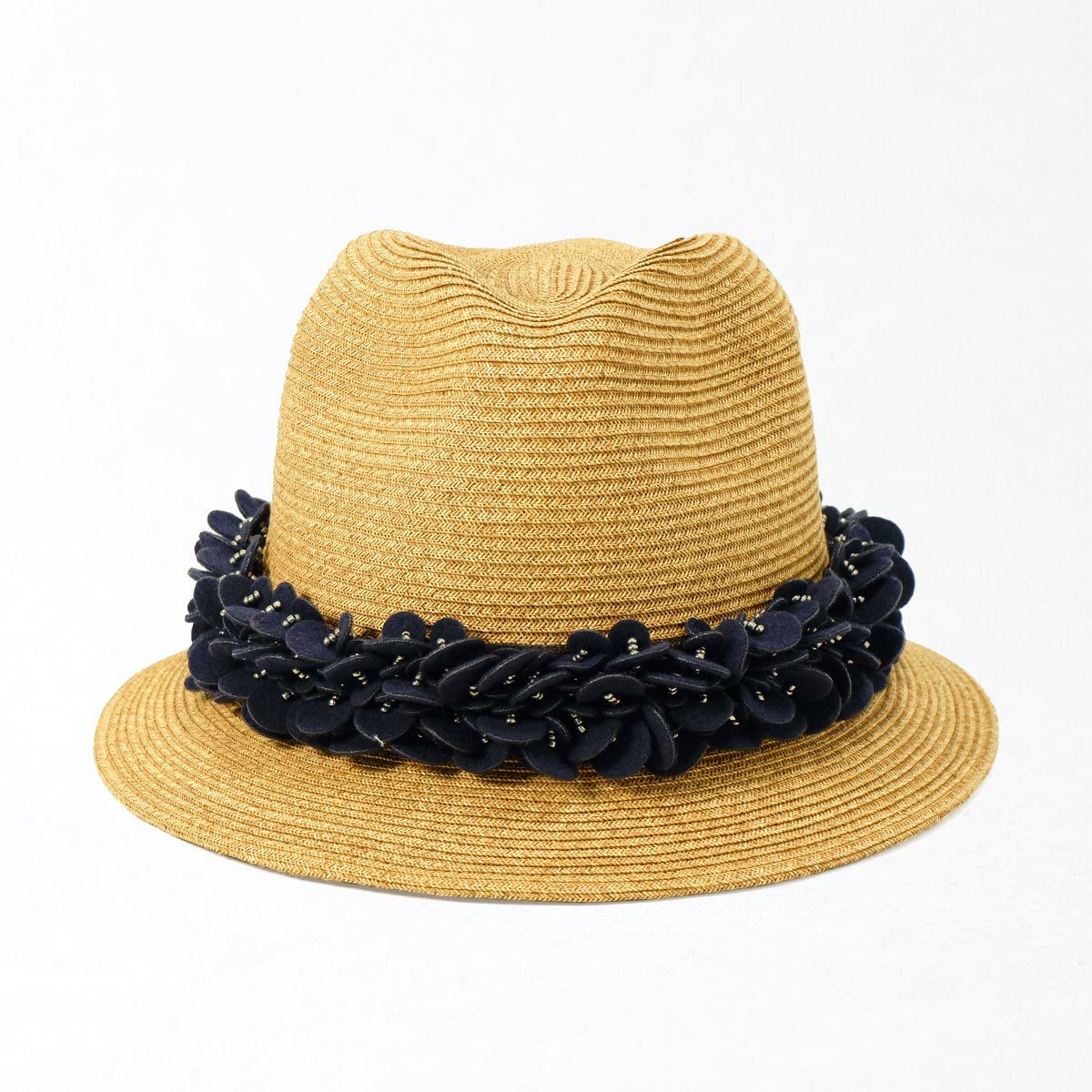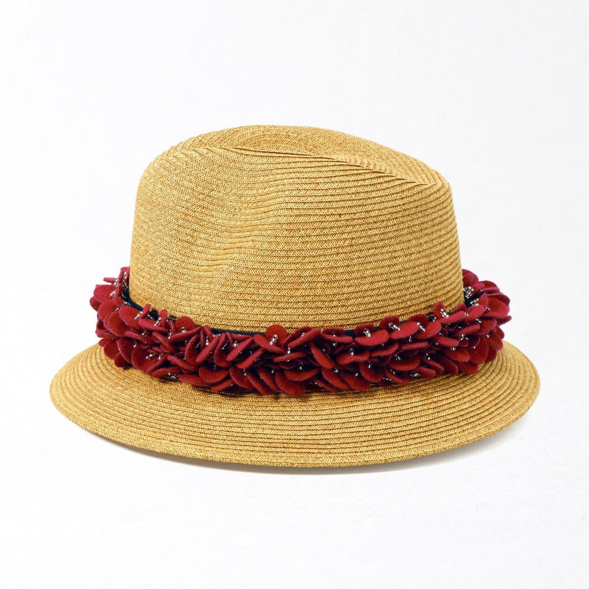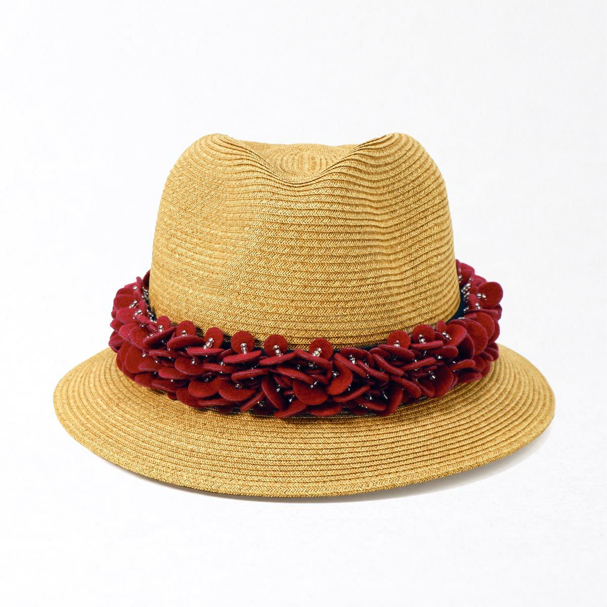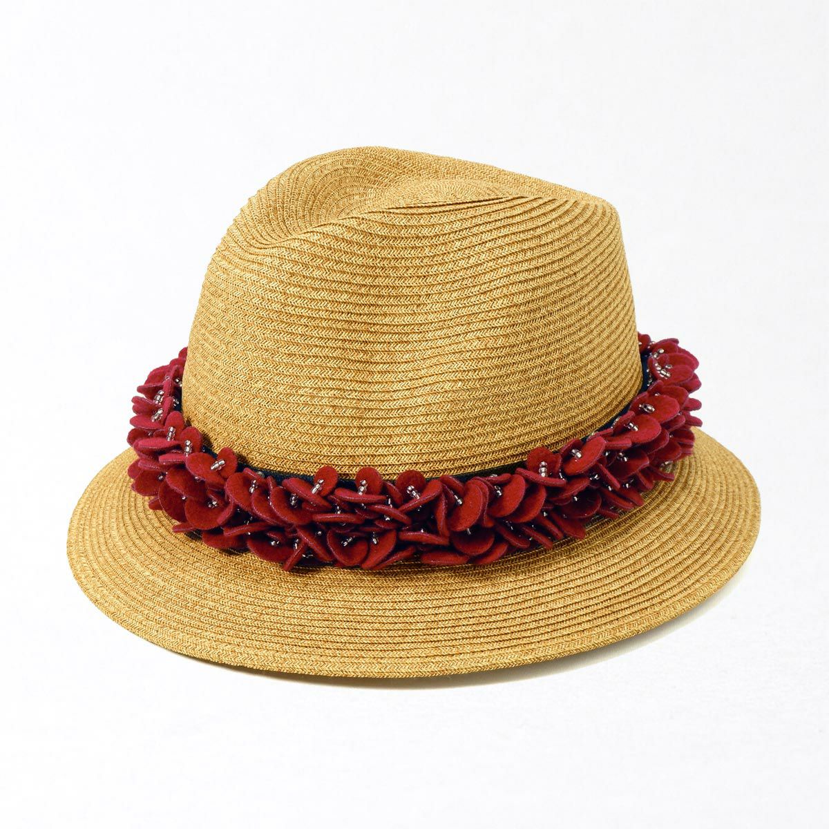 つば広ラフィア中折れ帽