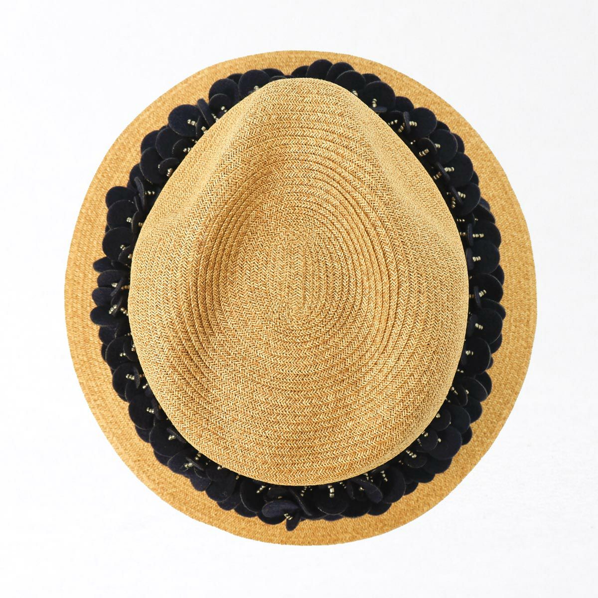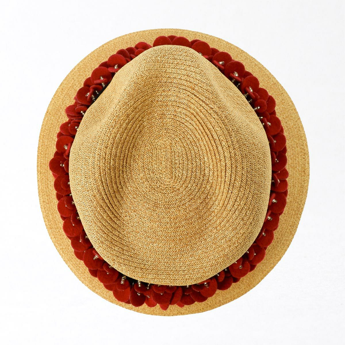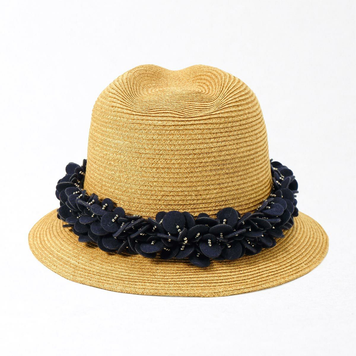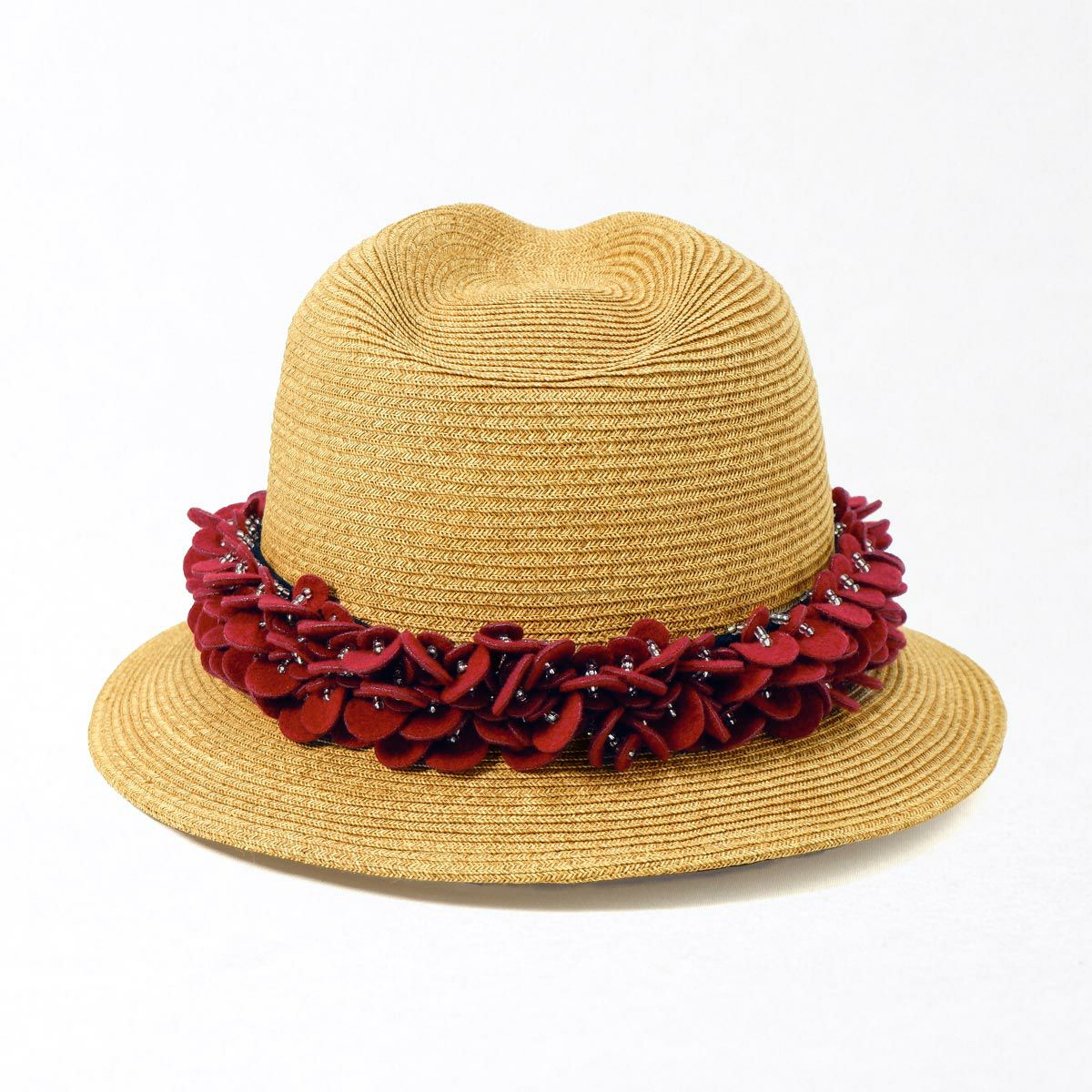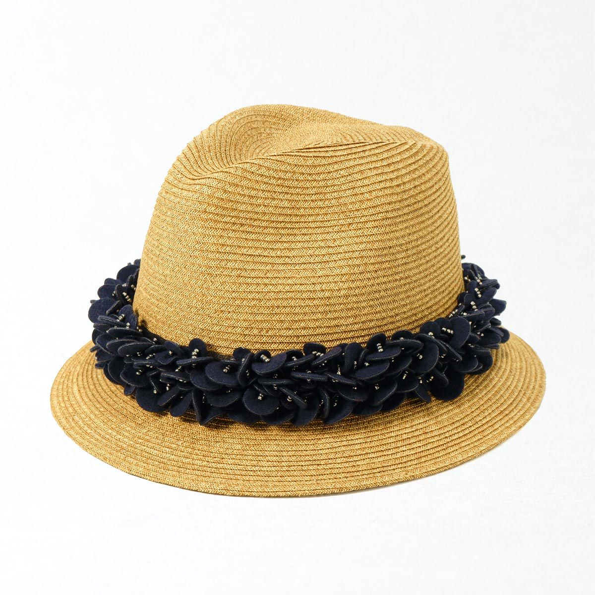 つば広ラフィア中折れ帽