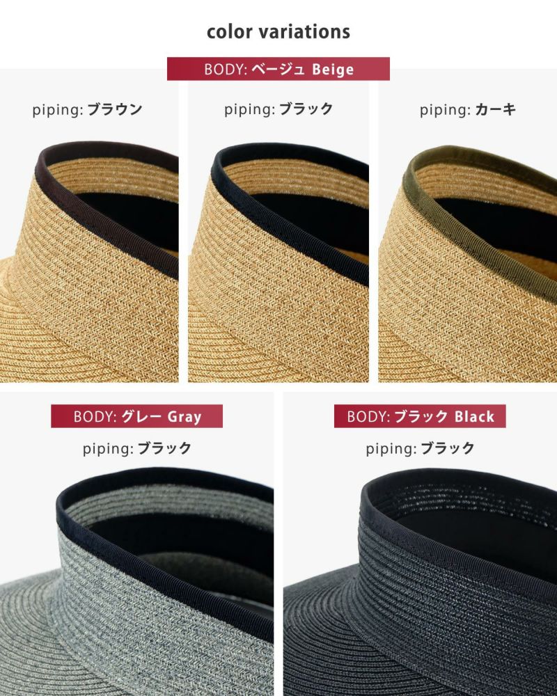 【カラー (本体色×パイピング)】ベージュ×ブラウン / ベージュ×ブラック / ベージュ×カーキ / グレー×ブラック / ブラック×ブラック