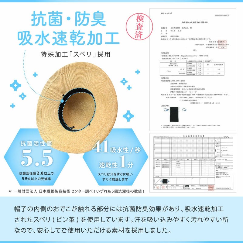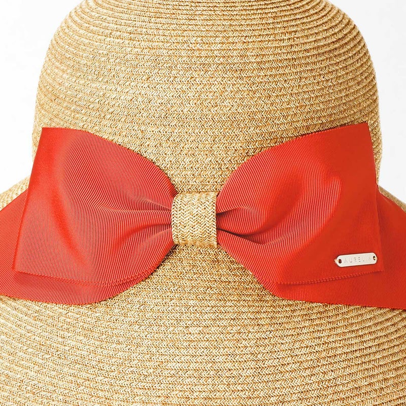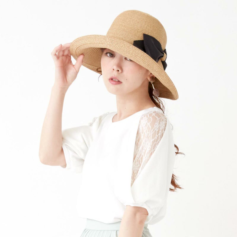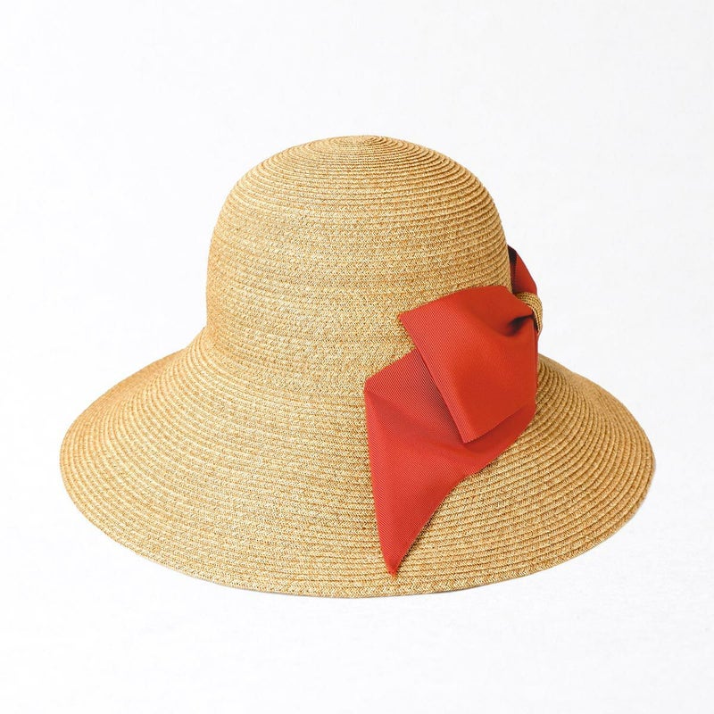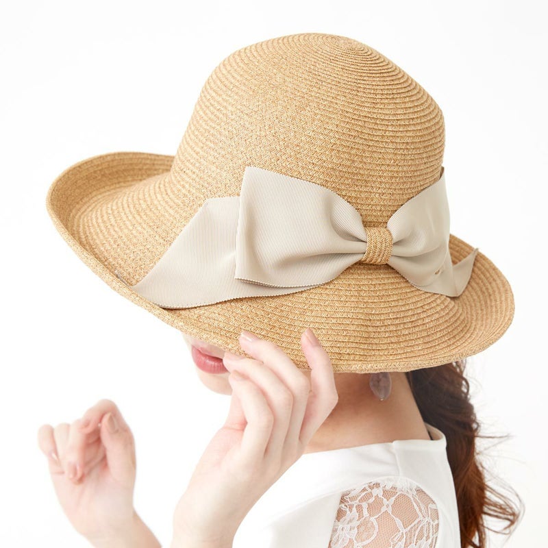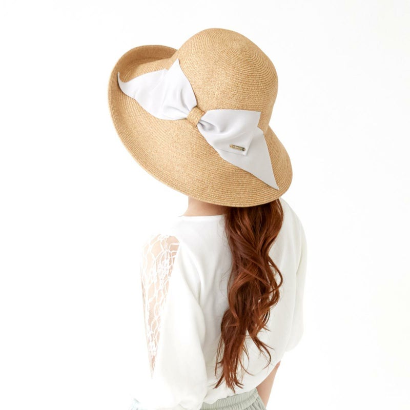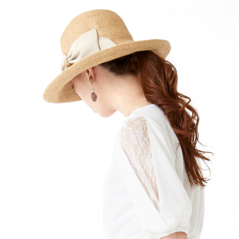 細く丈夫な色褪せが起こりにくい、耐久性のあるブレードを使用したリボンブレードハット。つばが長くしっかり日よけ出来て、ブリムアップにしても綺麗なシルエットで被って頂けます。ブリムアップした際に、キラッと輝くラメブレードがポイント。多彩なリボンカラー展開で、リボンを前やサイド、後ろにしても被れる、ファッションによって好みのスタイルをお選び頂ける帽子です。