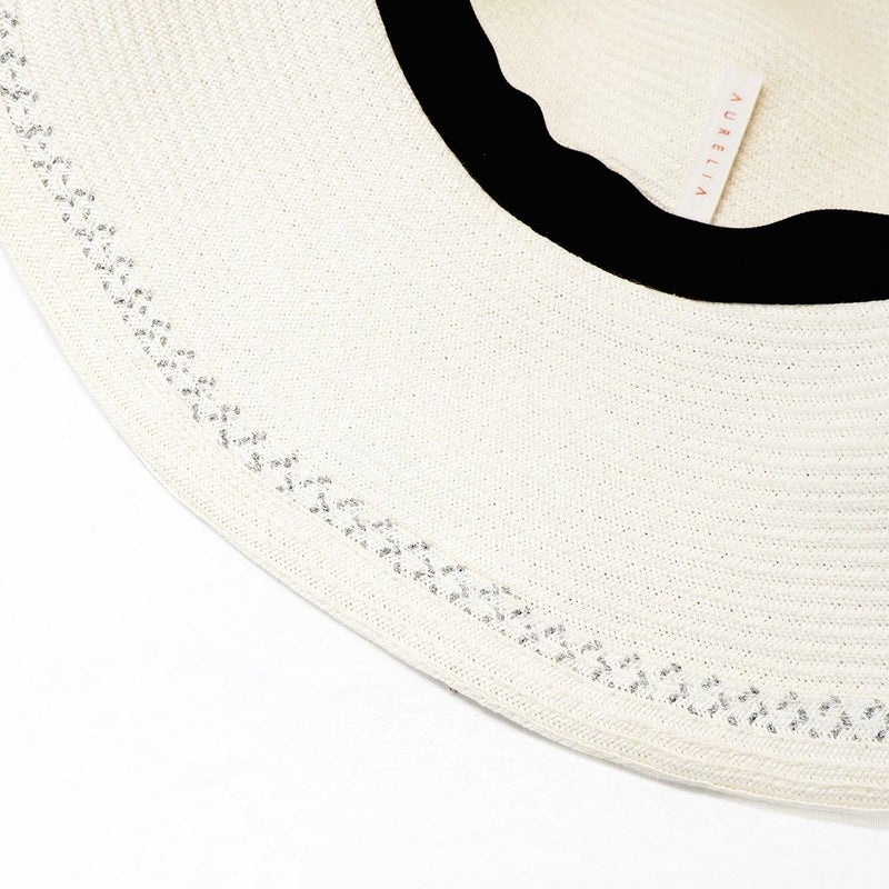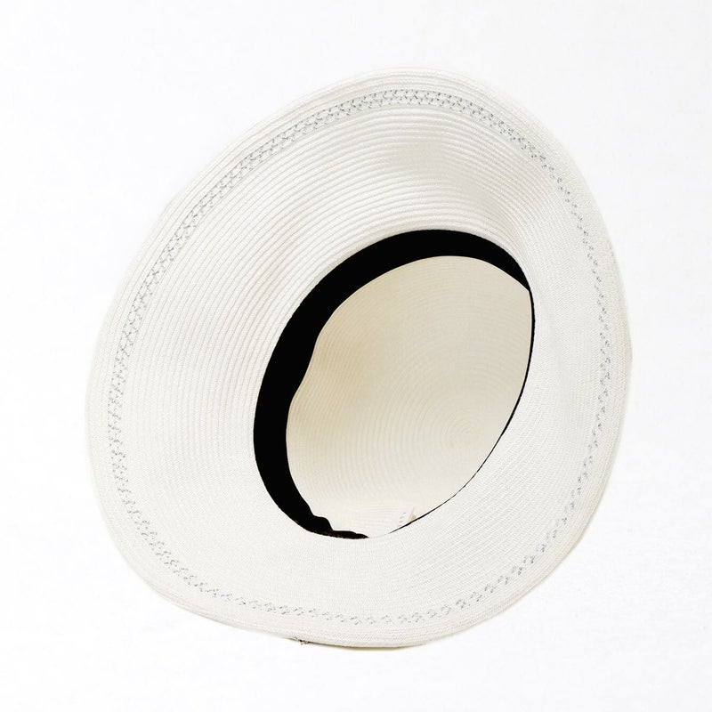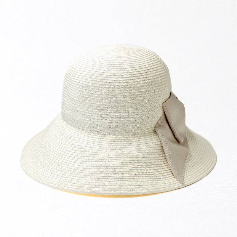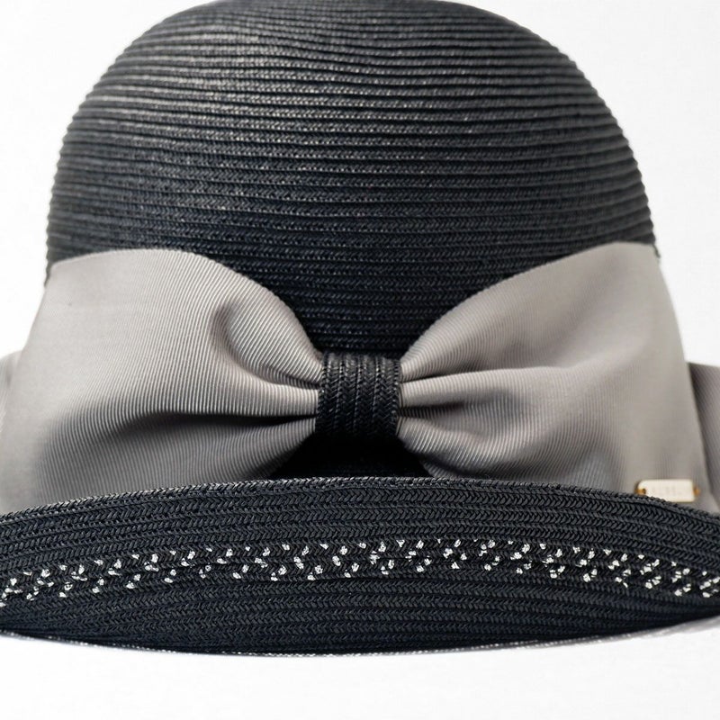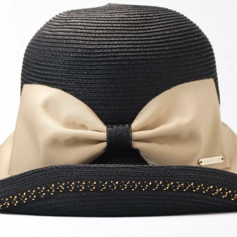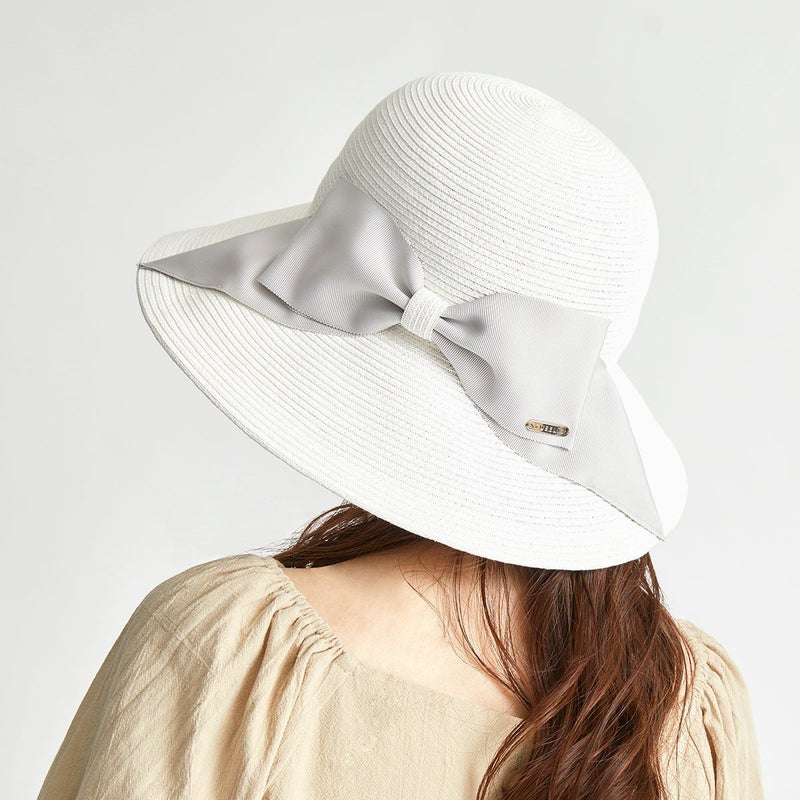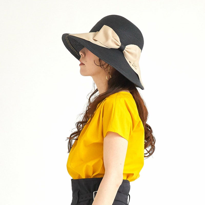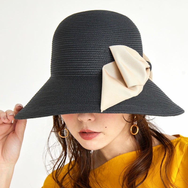 細く丈夫な色褪せが起こりにくい、耐久性のあるブレードを使用したリボンブレードハット。鐔が長くしっかり日よけ出来て、ブリムアップにしても綺麗なシルエットで被って頂けます。ブリムアップした際に、キラッと輝くラメブレードがポイント。リボンを前にしても、サイドにしても、後ろにしても被れる、ファッションによって好みのスタイルをお選び頂ける帽子です。